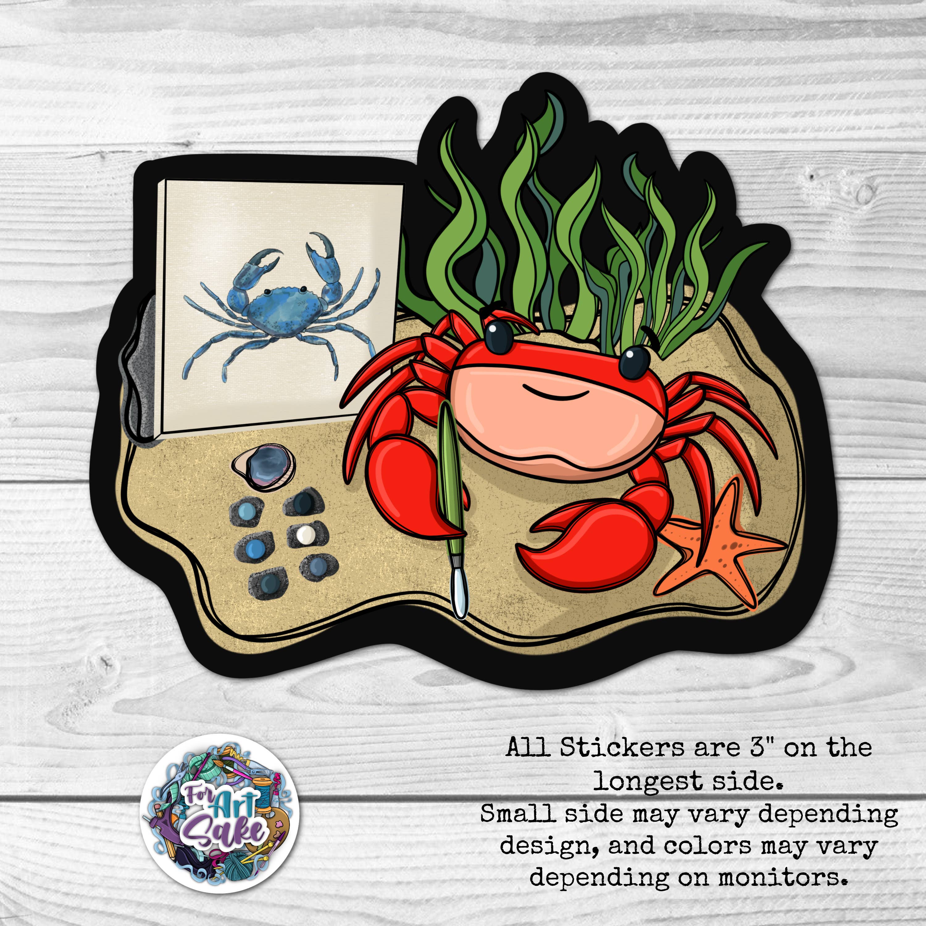 Item: Rainbow Crab Sticker Item Description: Stickers are waterproof, glossy and die-cut. They are perfect for adding a fun flare to a variety of items. Decorate your laptop, water bottle, bulletin board, and so much more! If you use these on your water bottle it is recommended to hand wash to ensure longevity. Size: approximately 3.5” wide and 2" tall All designs are hand drawn on an iPad. The design is then transformed into a sticker by inkjet printing on a quality sticker vinyl.