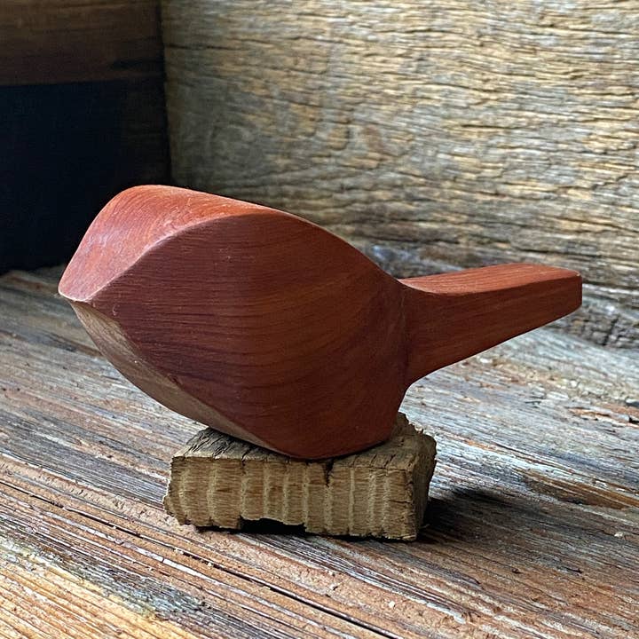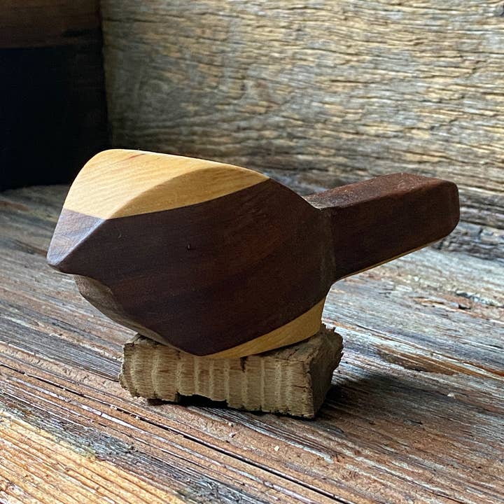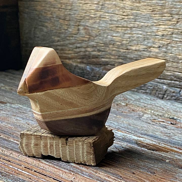 All layered ducks are handcrafted from reclaimed wood. The wood used to create these unique birds is harvested from a variety of sources: fallen tress, antique flooring, discarded furniture, etc. At the time of production these wood birds will be made from wood that is on-hand. Created by glueing different species of wood together in varying thicknesses, the birds could be made from the following woods: black walnut, cedar, cherry or miscellaneous species that are being reclaimed at the time of production. All pieces are one-of-a-kind and uniquely handcrafted based on the reclaimed wood and it's unique qualities. The featured photos represent examples of birds that have been crafted. Each new batch will be unique and not exactly as shown.