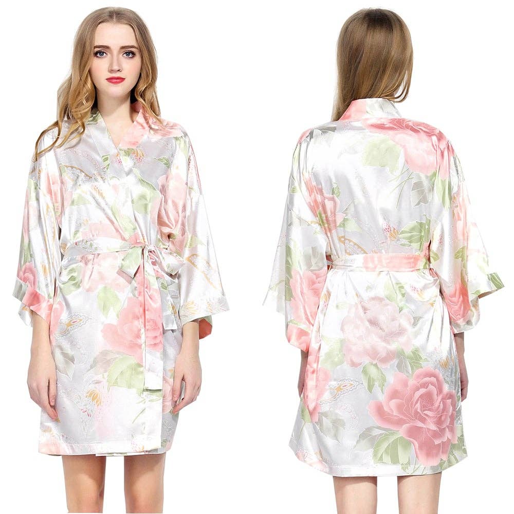 Satin and lace robes make the perfect wedding day gift for your whole bridal party! You and your bridesmaids will be so comfortable in these satin robes with lace trim as you get ready for your big day and, of course, look amazing in the photographs!! ROBE INFORMATION: These robes come in two sizes - One size (fits up to size 12) Plus size (fits up to size 24) Satin Inside & Outside, 100% Polyester, Self-Fabric Belt included, Lightweight, Kimono Collar Style.