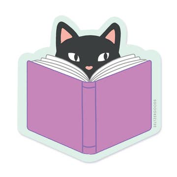 The witch's familiar has added some additional notes! Featuring a cute black cat and a witch's spellbook. Size: 2.75x2.7 inches Material: Vinyl. Durable, UV protected, waterproof, dishwasher safe