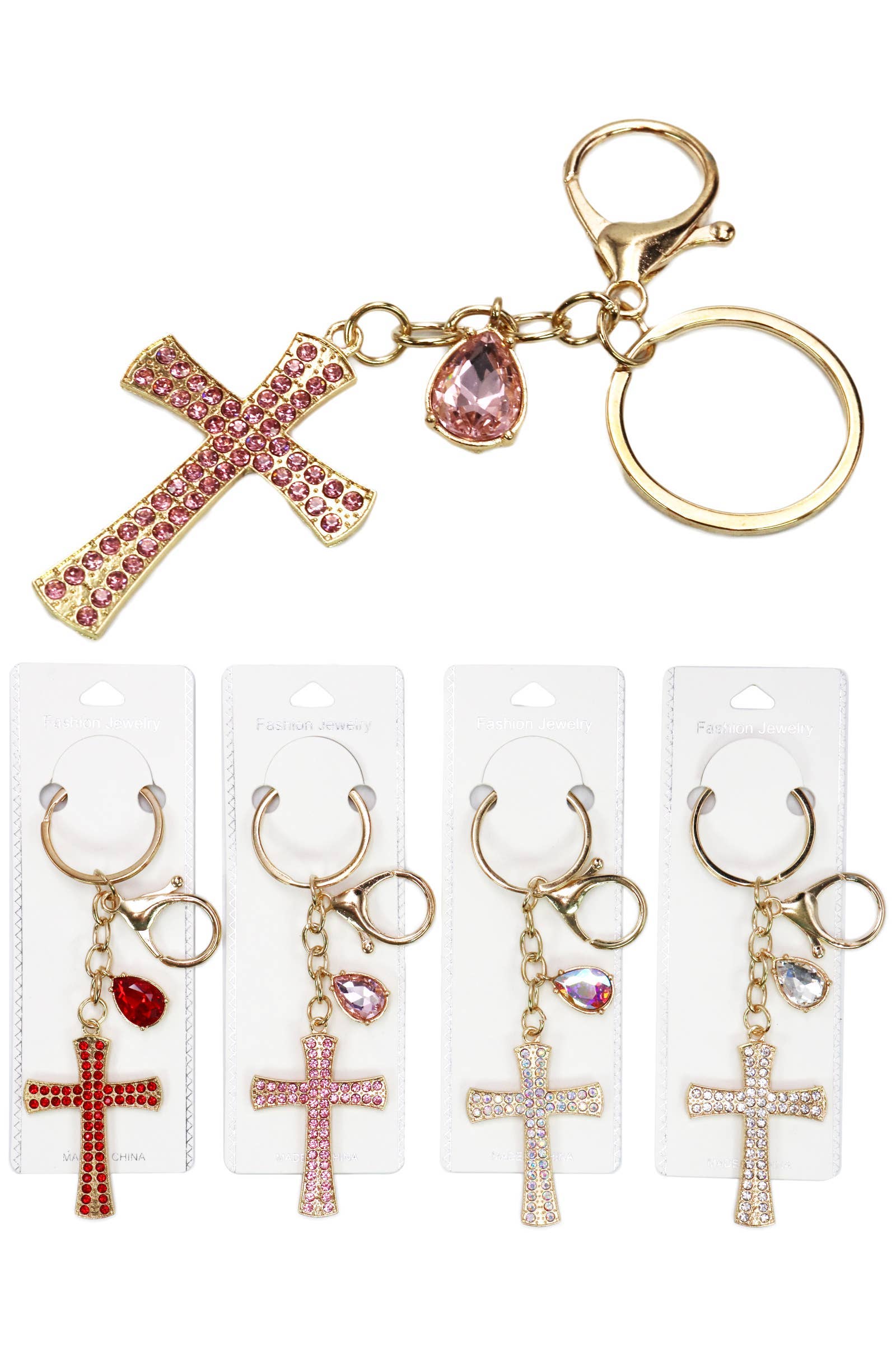 Cross Pendant Bling Rhinestone Metal Key Chain