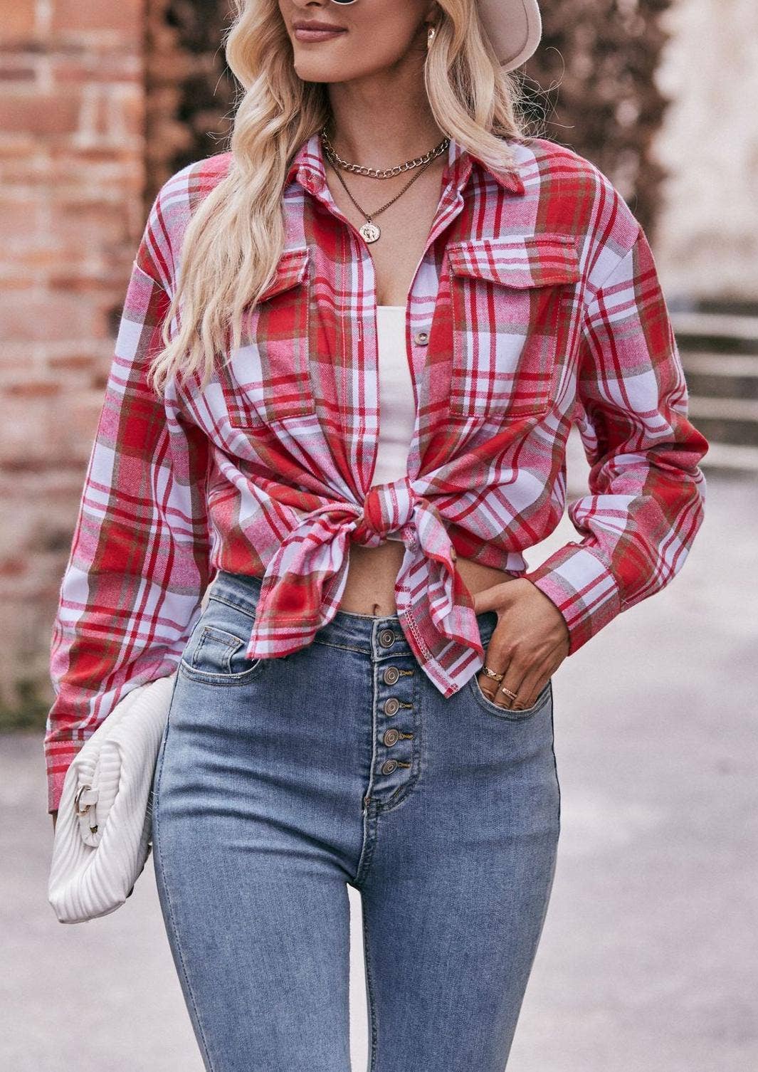 Super cute and trendy lightweight plaid shirt for ladies Turn-down collar, button-up closure, chest pockets, and cuffed sleeves Perfect to wear daily top wear or as a cardigan layering over your basic tees Trendy and very comfortable fits on the looser side Wholesale shirts are stylish, quality, and cheap