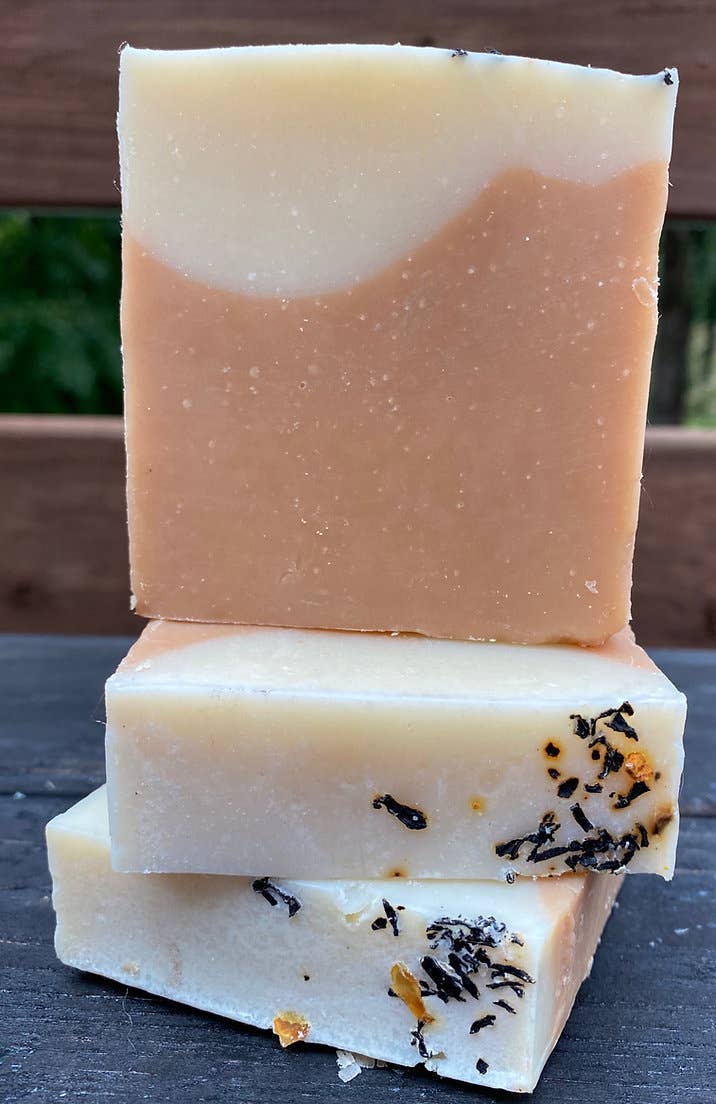 Turmeric gently exfoliates and lightens hyperpigmentation of the skin. Scented with Sweet Orange Essential Oil and Cinnamon Bark Essential Oil. HOW TO ORDER*** - Select label style. - Email us: (1) your logo, (2) your website, city, state and zip code (3) what you would like the bar to be named. Send information to: serenitysoaps92@gmail.com Ingredients: Canola Oil, Sunflower Oil, Coconut Oil, Distilled Water, Sodium Hydroxide (Lye), Organic Carrot Purée, Sweet Orange Essential Oil, Turmeric Powder, Kaolin Clay, Cinnamon Leaf Essential Oil. Weight: 4 oz