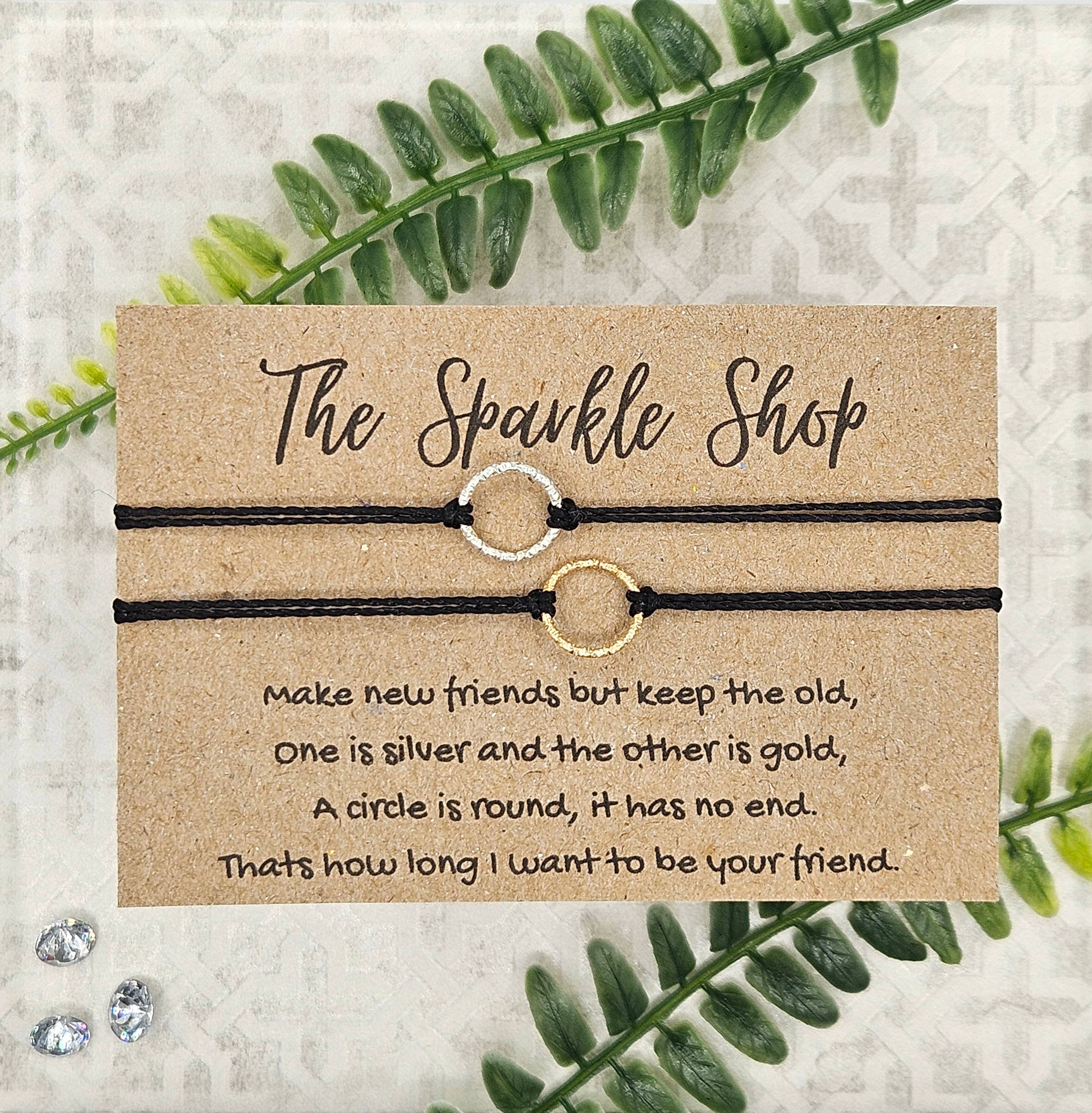 Handmaid wish bracelet with a beautiful massage, perfect for gifting to someone special, includes a 1mm cord bracelet, each with a silver star charm. Massage is printed on a high-quality kraft card and presented in a clear cellophane sleeve, The string bracelet is approximately 12" in length and the card is about 4.5"x3.5".