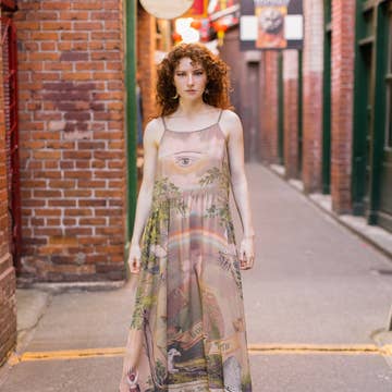 I couldn't even wait to hem this dress to post these - it's THAT beautiful! I've got these temporary photos (of yours truly) for now, in the Prism in Sunset. A darker, more jewel-toned version of the original Prism gradient.Ā We will not have very many of these, so get 'em while theĀ gettin's good! <3Ā Bring a splash of color to your wardrobe with our Prism Tiered Midi Overlay Dress. Crafted from lightweight chiffon, this exclusive dress features bold rainbow layered tiers for a unique look. Custom-crafted and made-to-order in 3-4 weeks. Let your style shine! Seen here are temporary photos of Cassie (real ones coming soon), wearing the L which is a bit big on her but feels lovely and flowy just as such.
