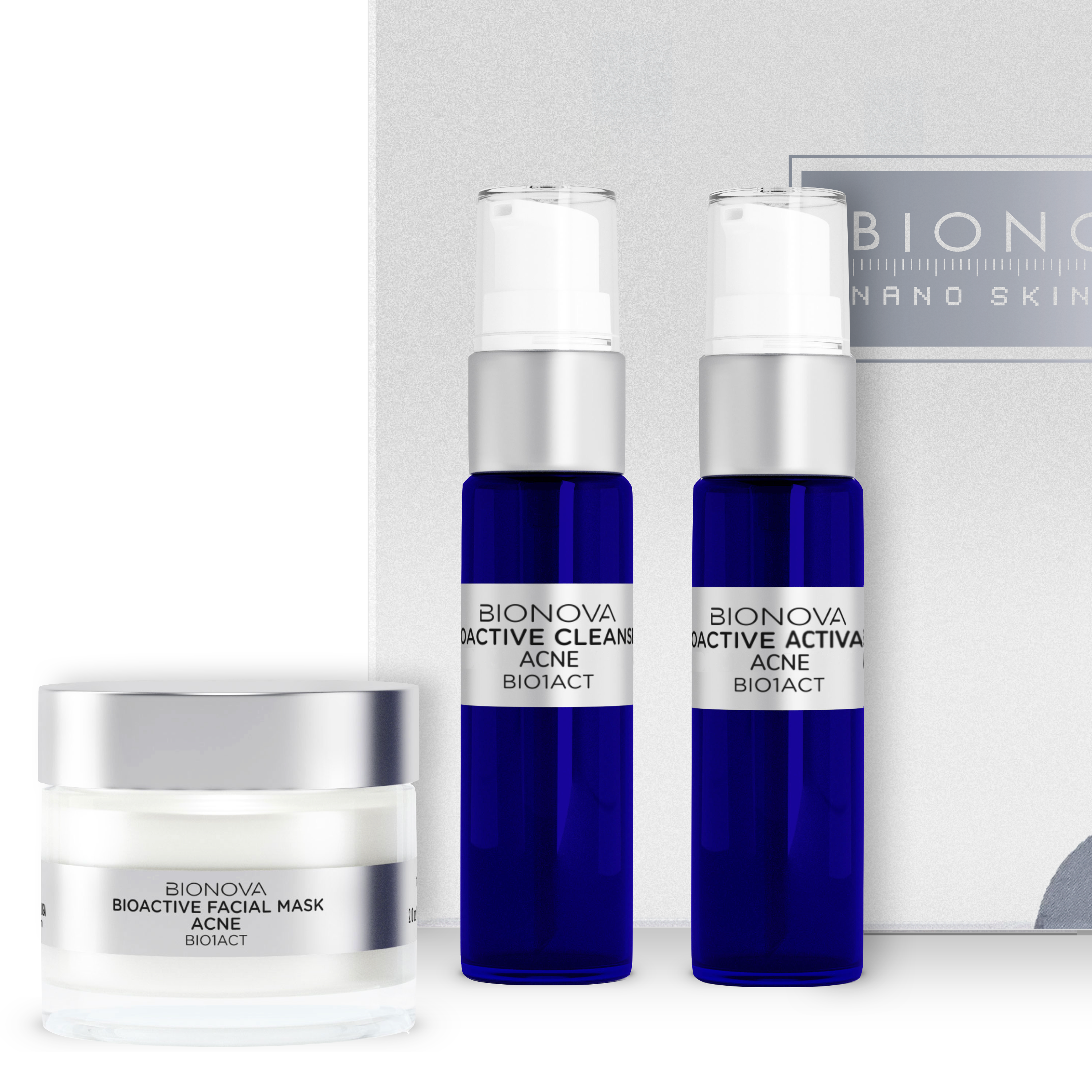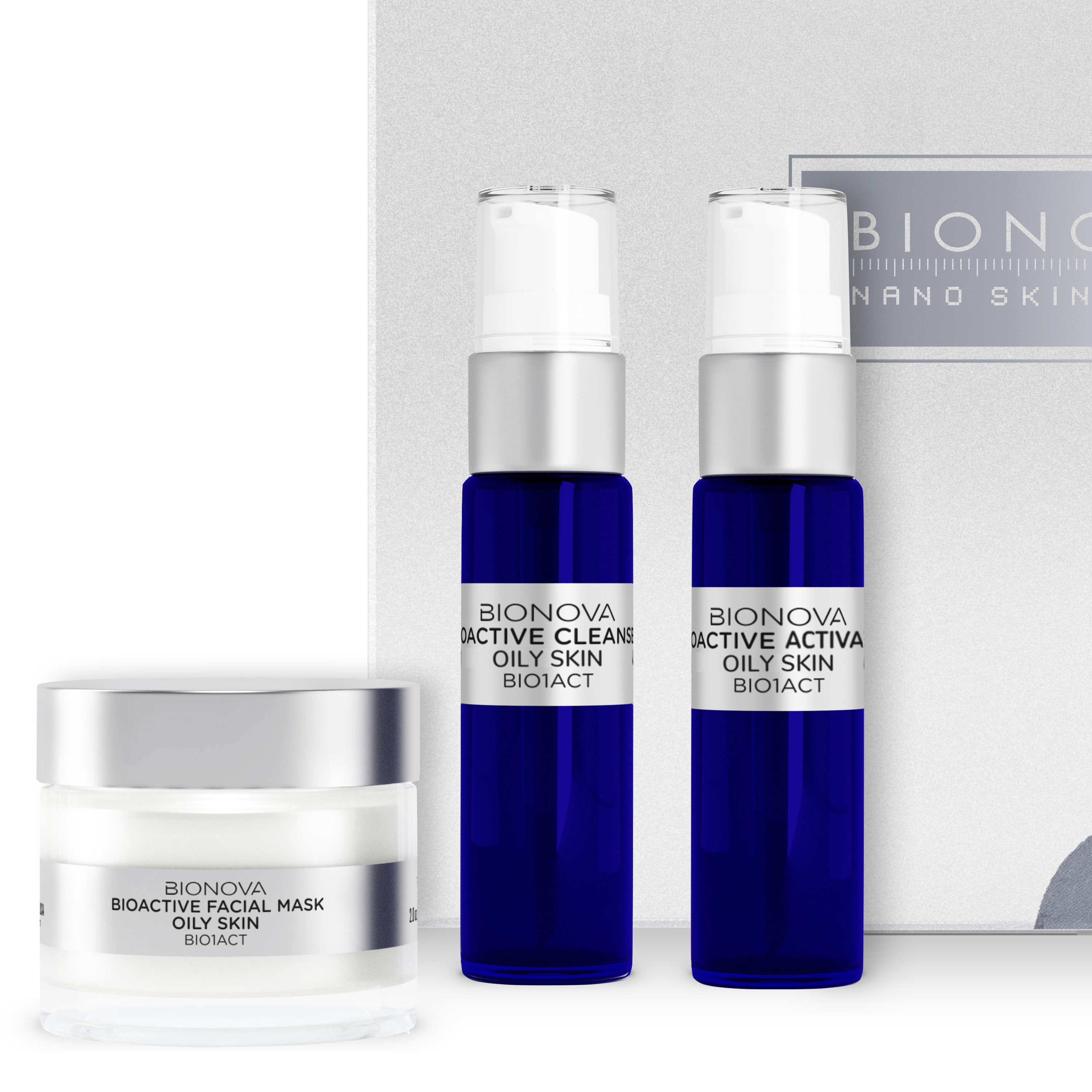 The BIONOVA Anti-Stress Discovery Collection for Oily Skin with UV Chromophores includes 3 skincare products specifically designed for oily skin: * Bioactive Facial Cleanser for Oily Skin, a gentle and non-foaming cleanser that deeply cleanses the face of all impurities. It eliminates excess oil and controls overactive sebaceous glands, working to increase complexion and blood circulation without drying out the skin surface. * Bioactive Oil-Free Cream Activator for Oily Skin, enhances the benefits of BIONOVA treatment cream by rebalancing skin pH levels without stripping the moisture barrier. * Anti-Stress Care Cream for Oily Skin: The treatment solution was developed to address the specific needs of stressed skin. It contains a formula of antioxidants, humectants, and bioflavonoids to combat oxidative stress and protect the skin from premature aging. It smooths existing facial lines and wrinkles while also working to reduce pore congestion.