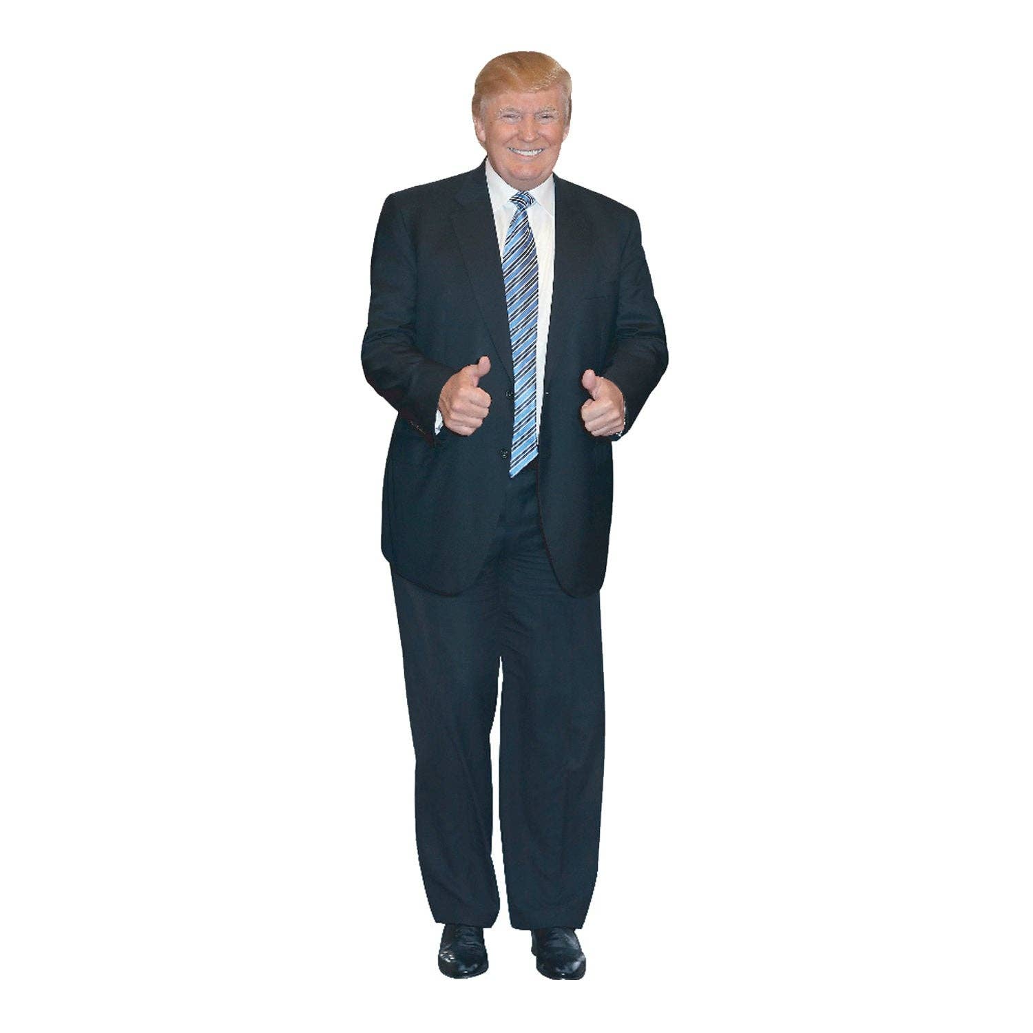 Donald Trump Life Size Cardboard Standup: 6 Feet Black Suit, Red Tie Bring the charisma of former President Donald Trump into your space with this life-size cardboard standup. Standing tall at 6 feet, this standup features Trump in his signature look, complete with his iconic red tie. Whether you're a supporter or simply intrigued by his larger-than-life persona, this standup adds a touch of political flair to any room, making it perfect for parties, events, or as a conversation starter. Made of durable cardboard, it's easy to set up and move around, allowing you to showcase your admiration or curiosity for the 45th President of the United States with ease. -Life-size cardboard standup of Donald Trump. -6 Feet tall with authentic details including his signature red tie. -Ideal for parties, events, or adding a political touch to any space.