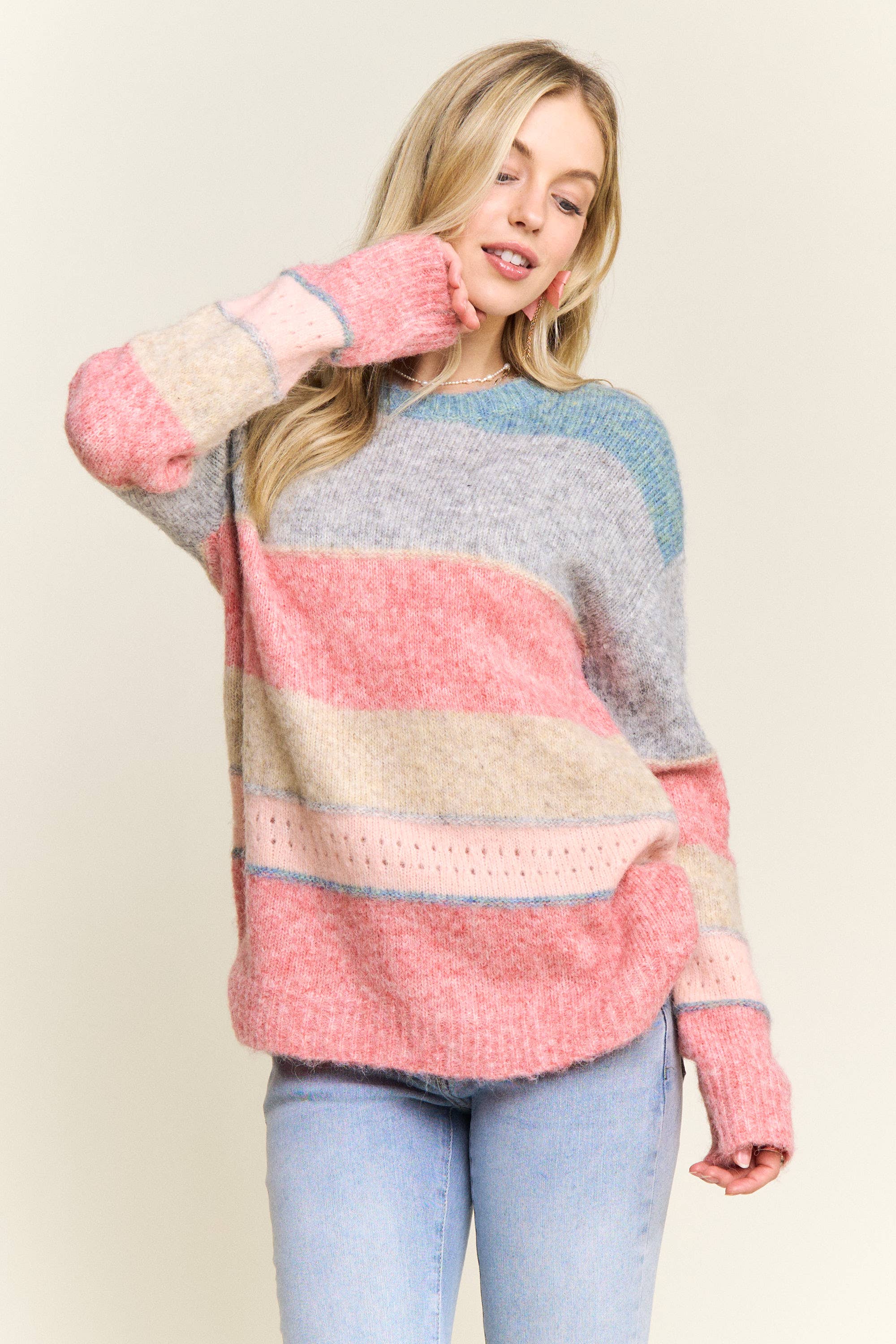 COLOR BLOCK PASTEL KNIT SWEATER PULLOVER