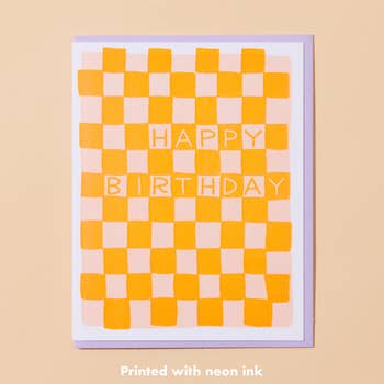 Rainbow Checkerboard Birthday - Risograph Card