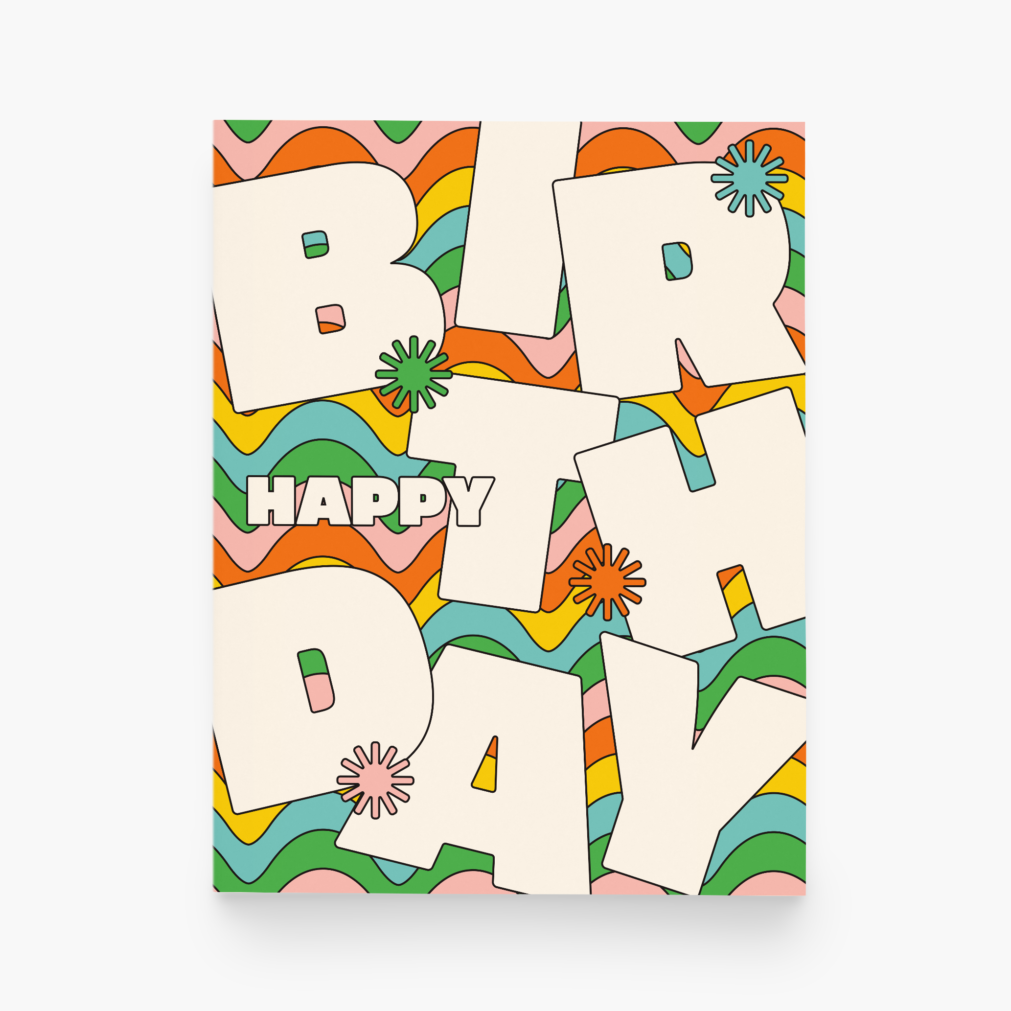 Say a fabulous "Happy Birthday!" with this bright and playful wavy checkboard card. Risograph printed in bright red, sunflower yellow, seafoam and federal blue ink. - A2 folded card, blank inside - White envelope - Eco-friendly, vegetable-based ink - Printed on 100% recycled, FSC-certified fiber-fleck cardstock - Commercially compostable sleeve