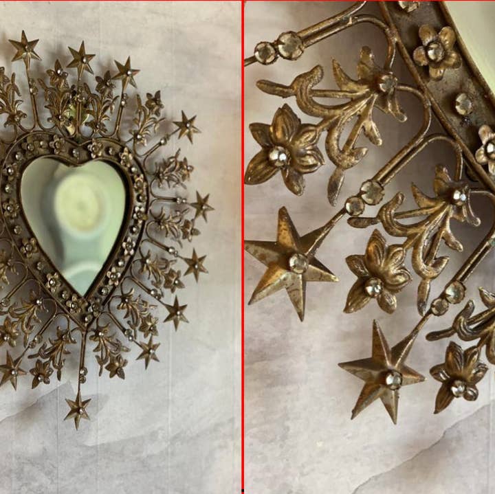 Tin Chaste Heart of St Joseph mirror. Can be used as a wall hanging or an ornament. * * Also, available in Sacred Heart of Jesus and Immaculate Heart of Mary styles in all three sizes. Large is 15.5” x 13” Medium is 10" x 8.25" Small is 5.25” x 4.50”