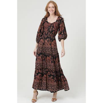 Wholesale Dewani Dress - Brushed Cotton - Dark Neutral Print Red Trim