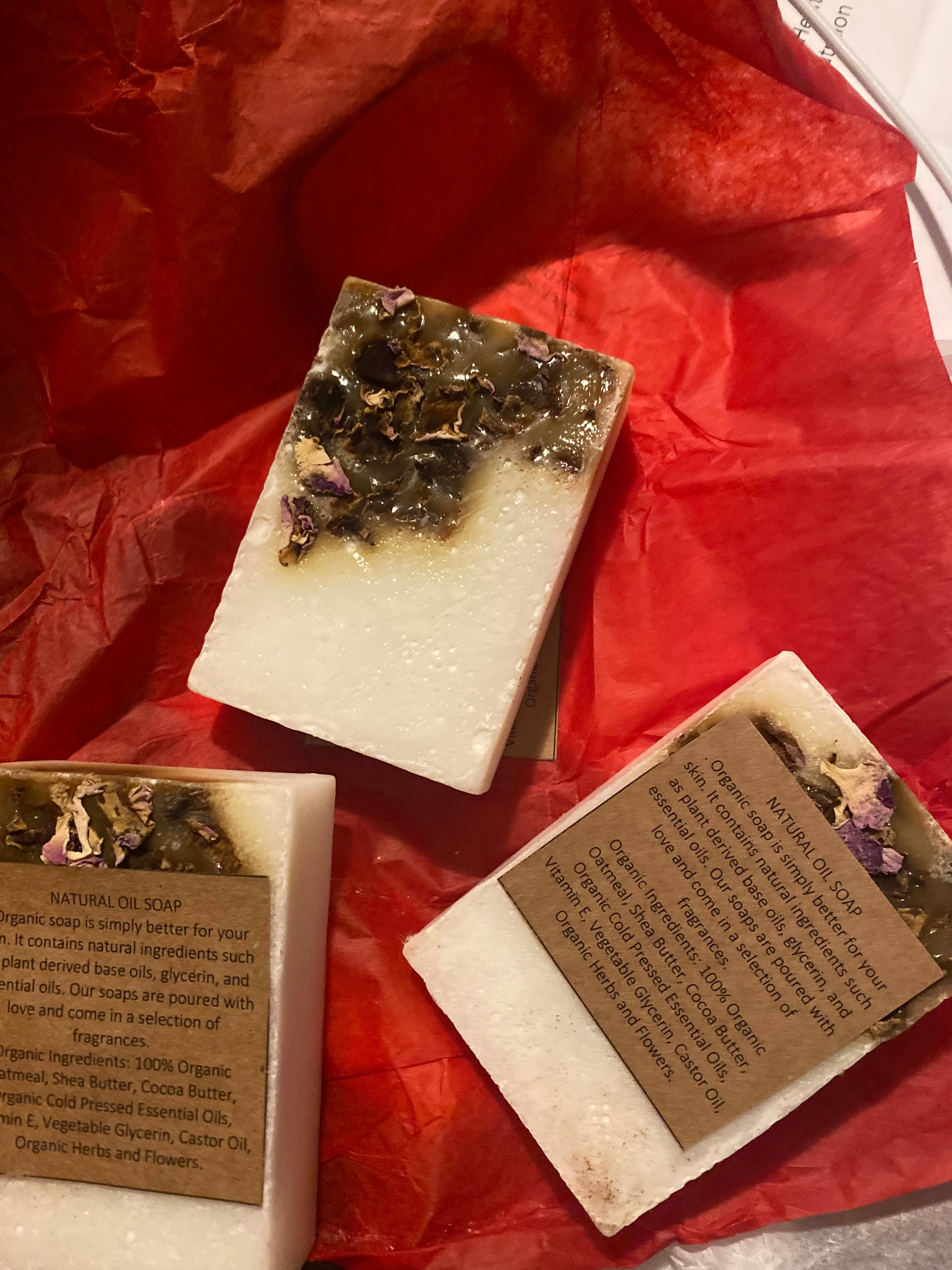 Our original soap recipe. Organic soap is simply better for your skin. It contains natural ingredients such as plant derived base oils, glycerin, and essential oils. Our soaps are poured with love and come in a selection of fragrances. Our oils are organic and cold pressed. Available in loaves (10 bars) approx 1 inch thick. - Please note us if you wish to have your loaf cut/uncut. - Please note us if you prefer no natural colour powder. Organic Ingredients: 100% Organic Oatmeal, Shea Butter, Cocoa Butter, Organic Cold Pressed Essential Oils, Vitamin E, Vegetable Glycerin, Castor Oil, Himalayan Salt, Organic Herbs and Flowers.