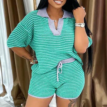 * Style No.: DS6873E4 GLAM FLOW 2 PIECE SET -new style -flowy -cute set -night out - Gathered -ruched -bubble -long sleeve -shorts -posh -diva -sexy set