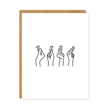 Love ya in Sign Language Size: 4.25' x 5.5' folded Material: Letterpress Cotton Paper Process: Letterpress Printed Envelope: Pink Interior: Blank Packaged for Retail: Clear Protective Bag Origin: Handmade in McHenry, IL