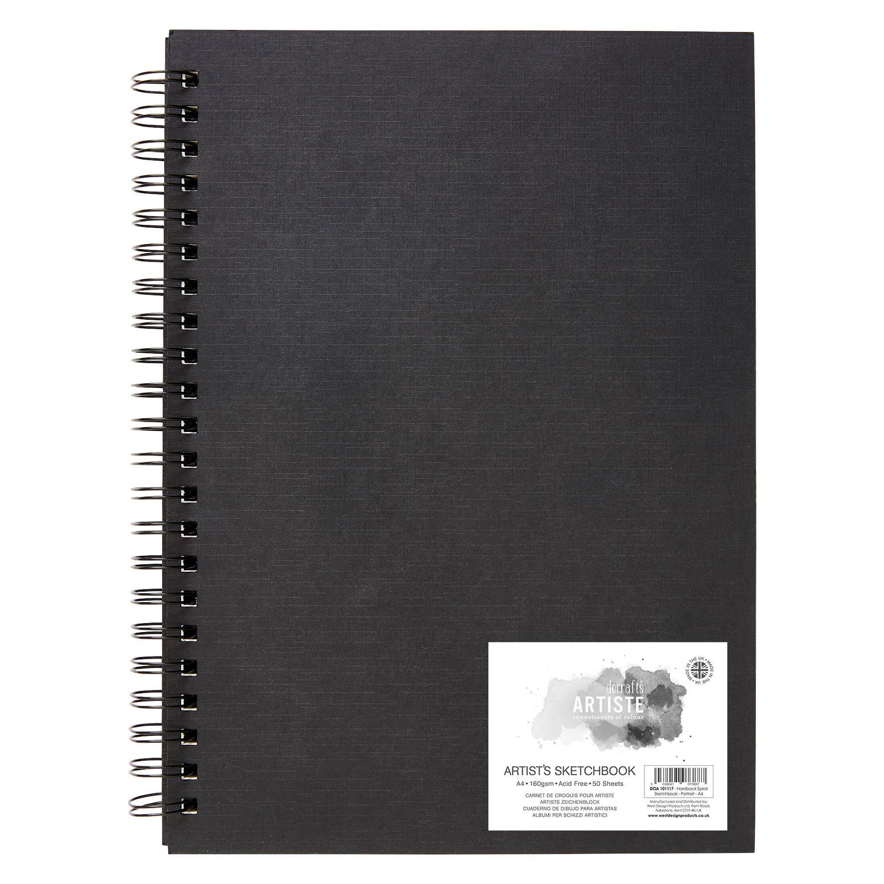 Artiste has a fantastic selection of spiral hardback sketchbooks, perfect for artists on the go! The hardback cover protects the enclosed paper while the spiral binding makes it easy to remove pages. Featuring A5 light textured white paper at 160gsm to help you achieve high levels of depth and fine retention of details. Suitable for pencil, pen, pastels and light watercolour artwork. Size: A5. Fine, textured surfaces, 160gsm, 50 sheets, Landscape