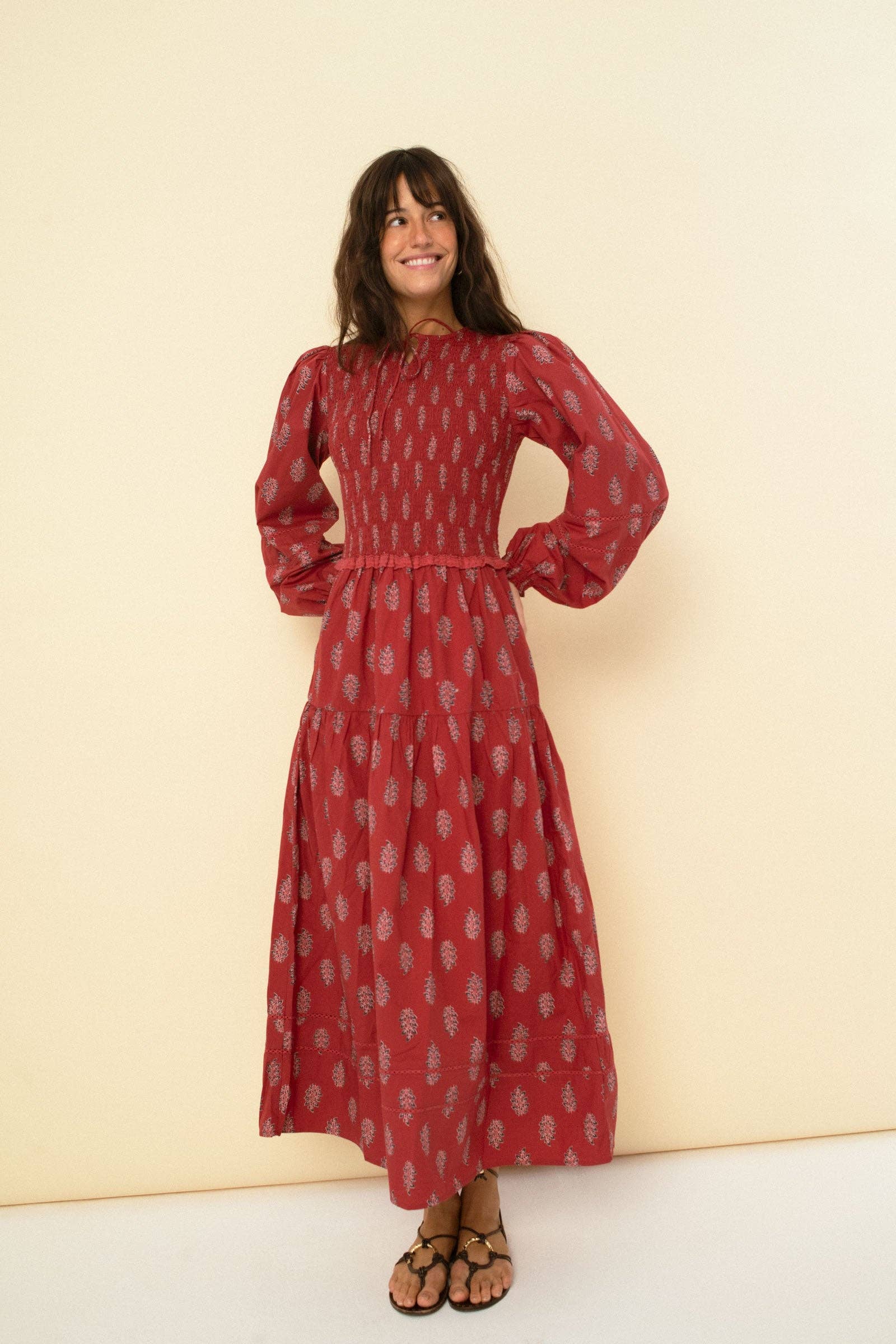 SKU: 1264-leonorcaramel-XXS Made in India Aesthetic: Bohemian Care Instructions: Machine wash Embellishment: Broderie and Embroidered Fabric: 100% cotton Neckline: Round neck Occasion: Everyday Sleeve Length: Long Sleeve
