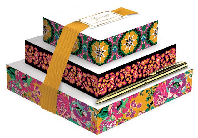 Add a touch of global elegance to your desk with our Moroccan Moorish Color Block Notepad! Inspired by the rich patterns and warm hues of Morocco, this beautifully designed notepad features blush-toned tile accents, shimmering rose gold foil, and a bold color block layout. With 150 thick cardstock pages, it’s perfect for capturing notes, lists, or daily thoughts with style and substance. Product Details: Design: Moroccan-Inspired with Rose Gold Foil Accents Pages: 150 Thick Cardstock Sheets Features: Compact Block Shape for Easy Display and Use Dimensions: 5" L x 3.75" W x 2.6" H Whether you're planning your day or jotting down quick reminders, this chic notepad brings elevated design and everyday function to your workspace.