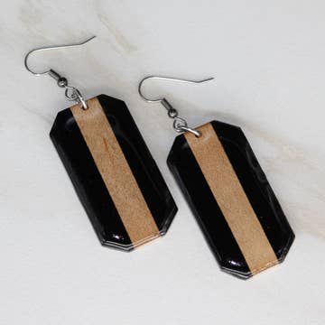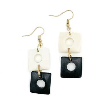 ivory black Antique wood and bone domino earrings for wholesale on Faire
