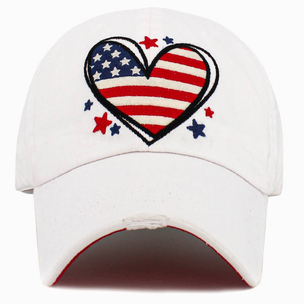 Heart American Flag Washed Vintage Ball Cap