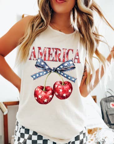 Patriotic Cherries With Bow DTF Heat Transfer