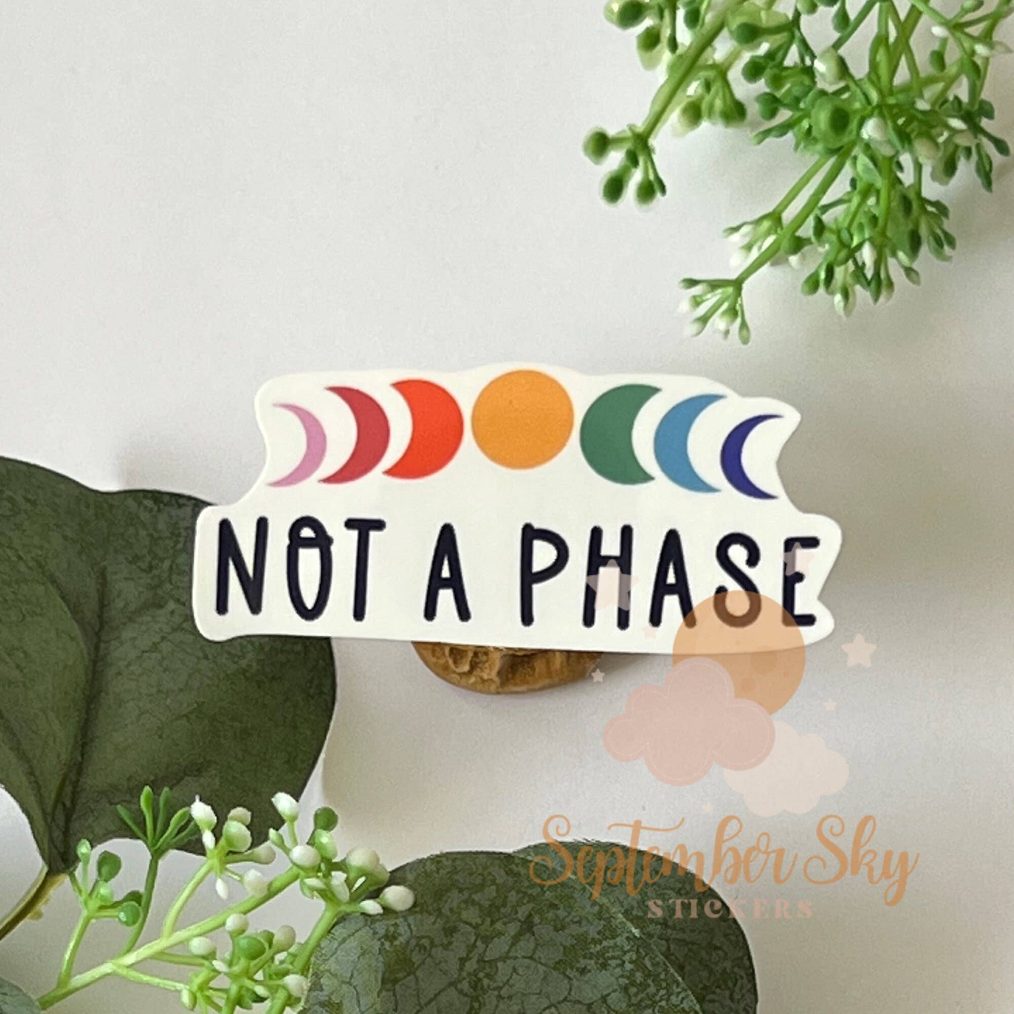 'It's just a phase' vinyl sticker by Turtle's Soup. 🐢 Most stickers are approximately 6 inches by 2 inches. 🐢 Our Turtley Awesome vinyl stickers are made from the highest quality ingredients on the market! Printed on thick, ultra-durable vinyl, these stickers are made to last. They're UV-coated, making them waterproof, weatherproof, and dishwasher safe! 🐢 Save the planet, pass on the packaging. All of our stickers are packed loose, meaning no plastic, no paper, just product! We can offer it upon request with an added environmental surcharge if you require packaging. 🐢 We offer retail displays in a variety of sizes. Ask about our 12 or 24-pocket countertop displays. Have a slat wall? We also offer a 30-pocket wall unit. 🐢 We always include hand-picked samples to fit your boutique with every order. Interested in trying out a specific SKU in your shop? Let us know, and we'd be happy to include some freebies. 🐢 Copyright © 2022 Turtle's Soup. All Rights Reserved.