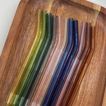 Bent Reusable Glass Straws - Multiple Colors