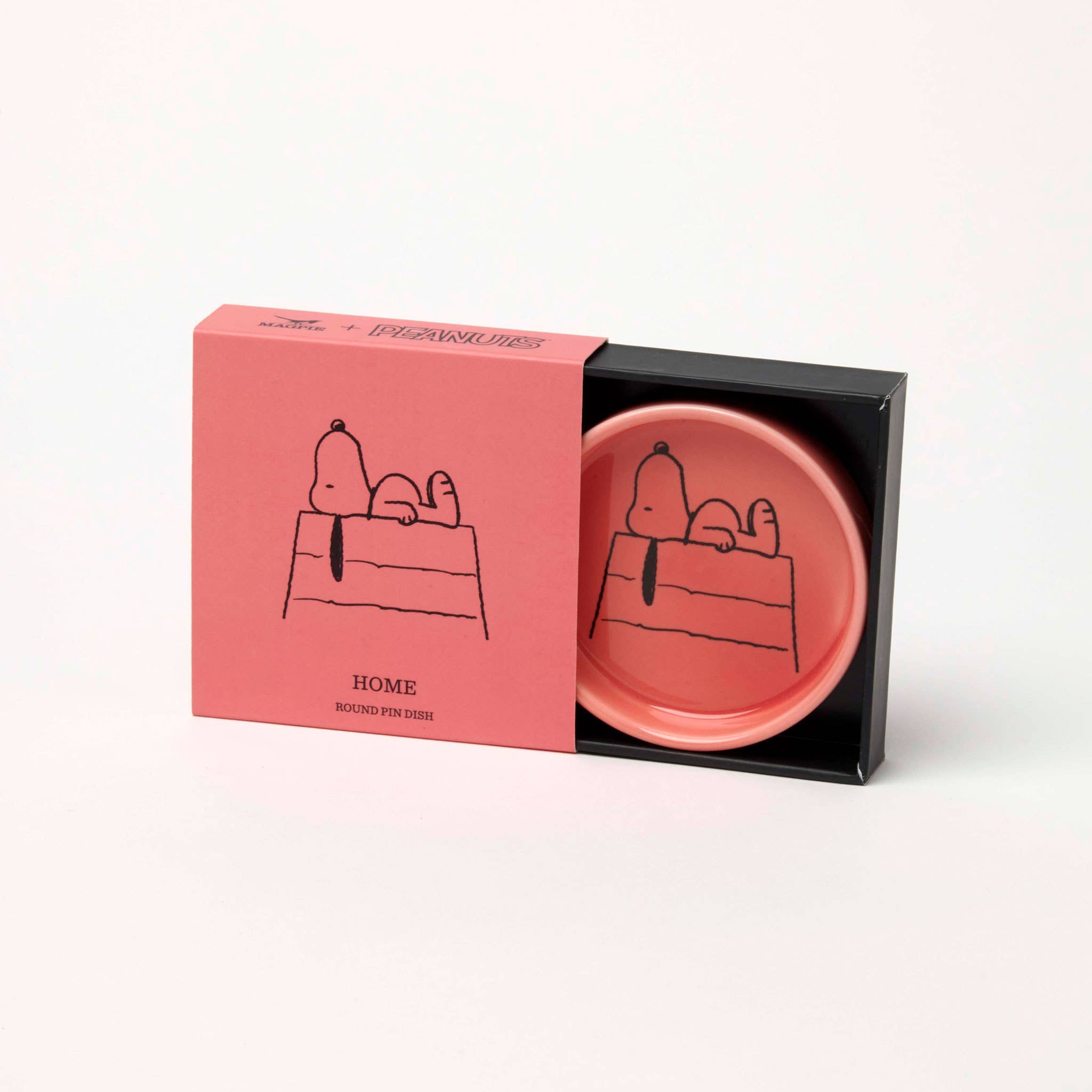 Cute 8cm round shaped coloured glaze vegan ceramic shaped dish/tray. Decorated with a black decal of Snoopy ready for tennis. With slide out colourful gift box.