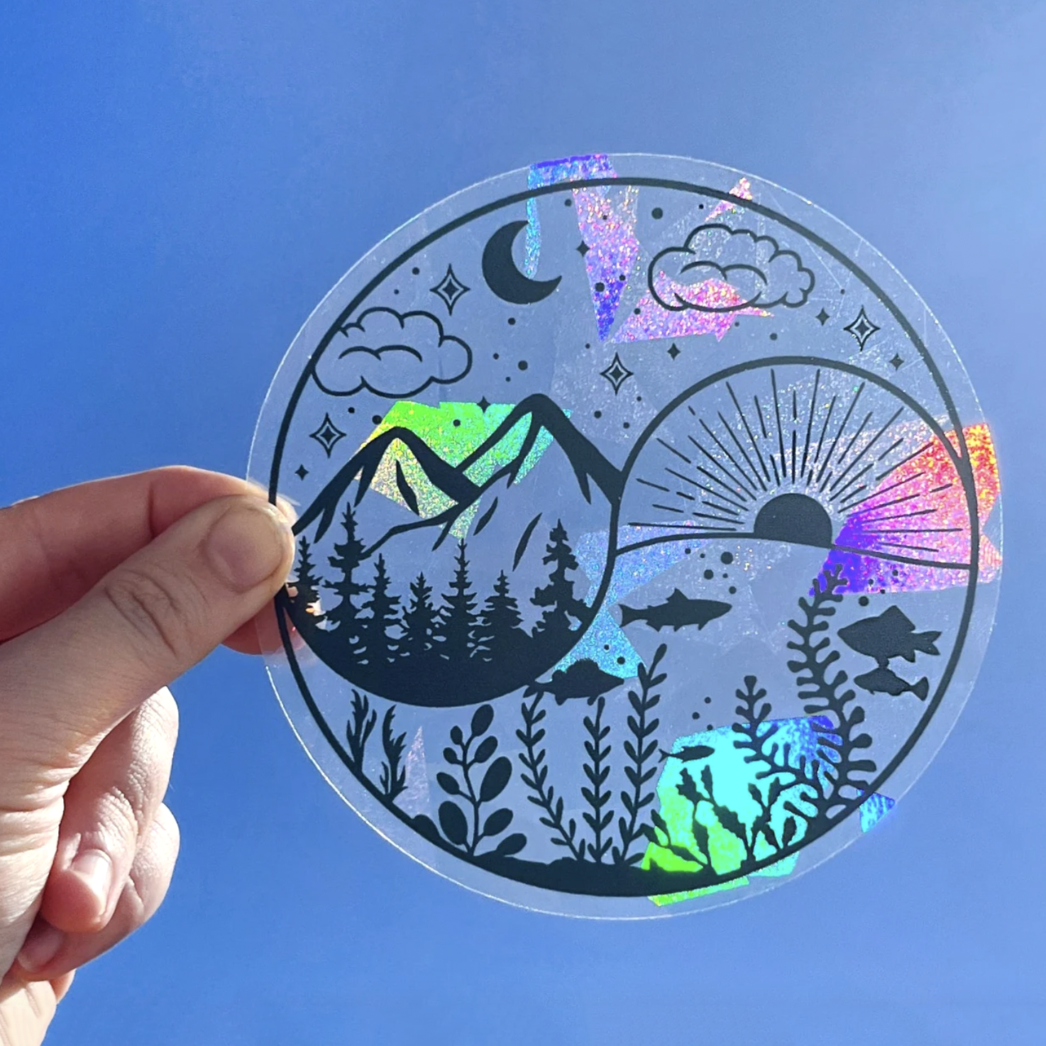 Place this suncatcher on any window that receives bright light and watch as rainbows pour in! These suncatchers measure approximately 5.5" x 5.5" (measurements may vary by design) and are packaged on a 5" x 7" backing card, then placed into a resealable cello bag. Made from prismatic window cling material, these suncatchers are completely window-safe - removing easily without leaving behind any sticky residue. This makes them perfect for any window, including those in rentals or dorms. To apply: Simply remove the plastic sheet from the back of the suncatcher, spray water onto a clean window, and place the suncatcher while the window is still wet. To ensure proper adhesion, press the cling firmly onto the glass using a paper towel. Application instructions are provided on the back of each package. For local orders, a "Made in Halifax, Nova Scotia" sticker can be included upon request.