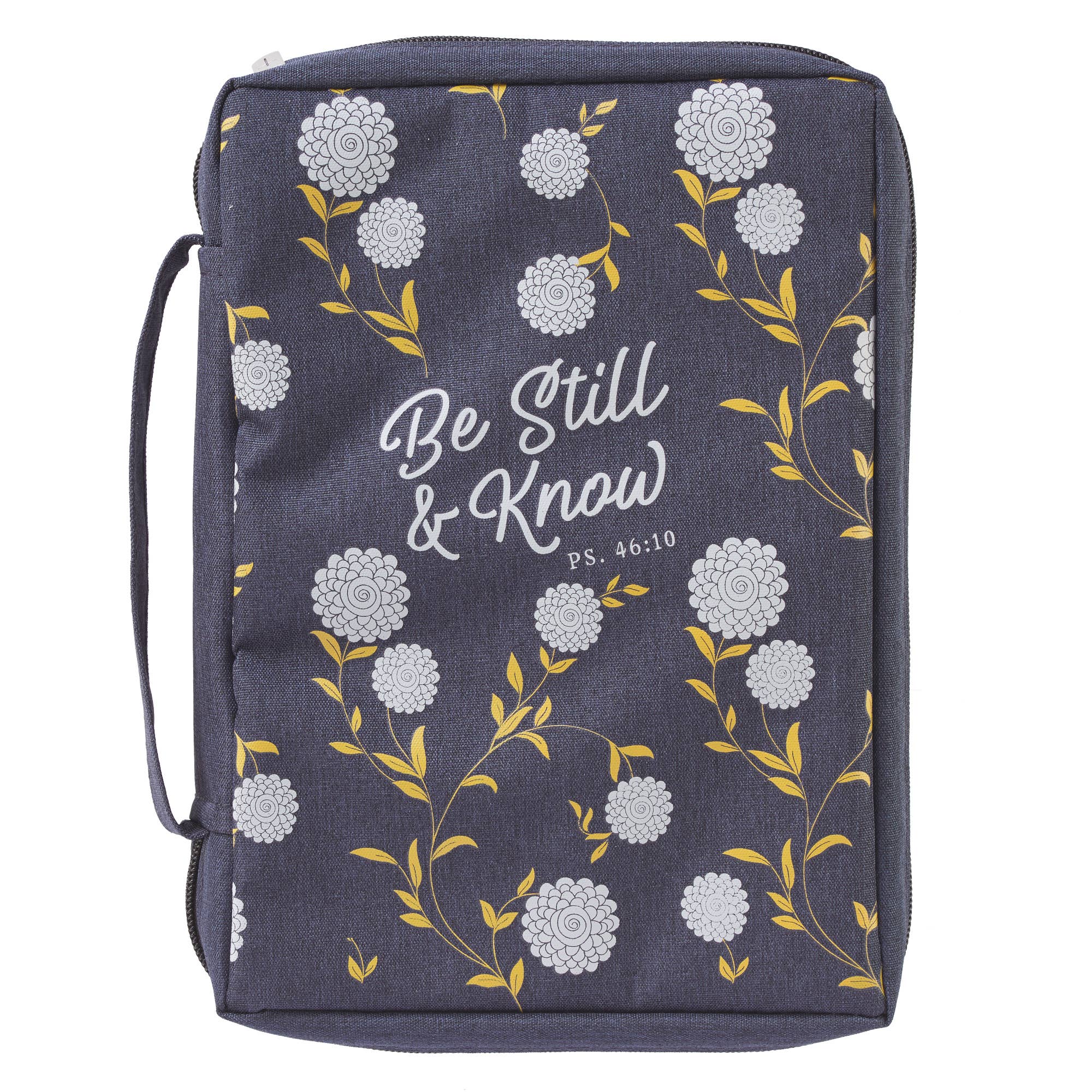 We can trust God's timing! The He Has Made Everything Beautiful Navy Floral Value Bible Cover is perfect for any woman with a youthful spirit. This Bible cover with its bright coral and yellow flowers will protect your Bible—the same book that promises all things will be brought to fullness and made beautiful in God's time! Navy background with stylized font and flowers, Screen-printed cover, Poly-canvas material, Back zippered pocket, 2 pen loops inside, Lay-flat spine handle, Self-seal bag packaging, Available in medium and large, Refer to Image Carousel for Bible Cover Sizing Chart