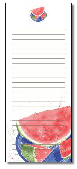 Words & Watercolors Memo List Pads Everyone loves lists! They help us remember what's important, what to do next, what to shop for, and what we're thankful for. Make your customer's list-making easier with our handy and attractive Words & Watercolors Memo List Pads. Each pad measures 3.5" x 8.375" x 0.3125" and contains 60 lined sheets with a magnet on the back, packaged in a neat clear bag. No prices are marked on the packaging, making them perfect for gifting or personal use. Live by your lists!