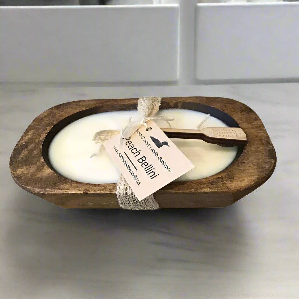 SKU: Farmhouse Kitchen Oak Dough Bowl Made in Canada Benefit: Refreshing Burn Time: 50 hours Color: Brown and Off-White Flame Type: Cotton Fragrance Notes: Allspice, Cinnamon, Clove, and Vanilla Handmade: Handmade Ingredients: Wood decor bowl, cotton wicks, eco-friendly soy wax, phthalate-free scent, labels, twine Material: Wood Number of Wicks: 3 Refillable: Refillable Scent: Gourmand Season: Fall and Holiday Season Size: 9 inch length Wax Type: Soy Wick Material: Cotton Product Language: English Weight: 0.91 kg (2 lb) Dimensions: 24.1 x 14 x 6.4 cm (9.5 x 5.5 x 2.5 in) Product Materials: Plastic-free, Refill, and Vegan Packaging: Plastic-free and Recyclable Production: Ethically sourced