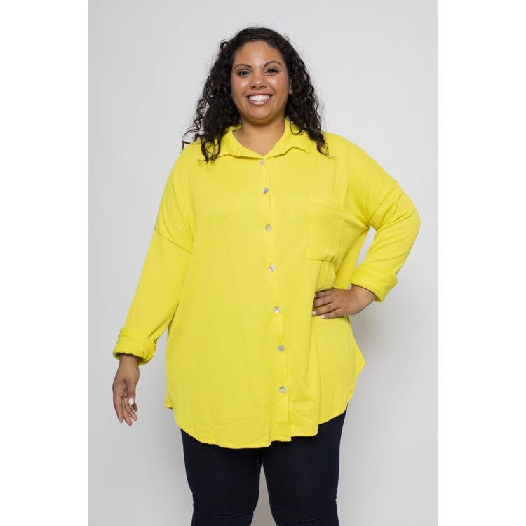 Wholesale Size Inclusive Plus Size Polka Dot Denim Button Up Shirt