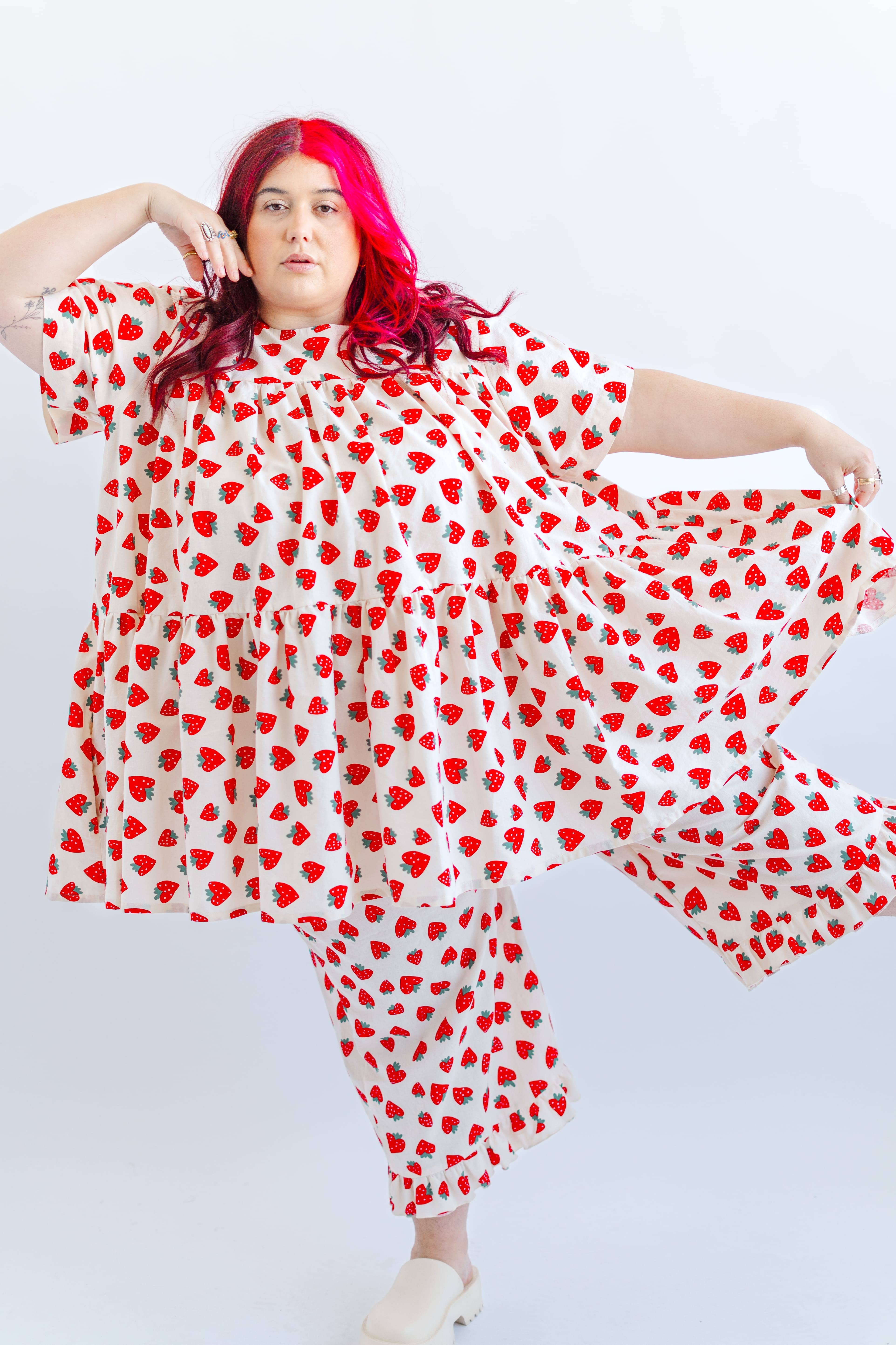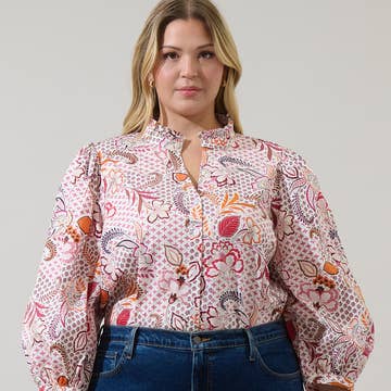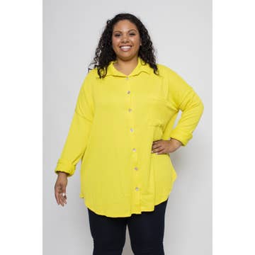 A playful twist on our bestselling Soft Volume Top — now in mid-dark washed denim with woven white polka dots. - 100% cotton denim with woven white dots, prewashed - Wash cold, air dry or tumble dry low - Relaxed fit with curved hem and soft drape - Slight high-low shape with side slits - Button-up front for versatile styling - Keda, 5'2", 60" bust/54" waist/65" hip, wears OS++ - Angelina, 5'7", 58” bust/47” waist/60” hips, wears OS - Madison, 5'7", 36" bust/28" waist/38" hips, wears OS- The minimalist jacquard pattern gives a faded, vintage-inspired look that shifts subtly in the light. Lightweight yet structured, it drapes beautifully with soft movement and everyday comfort. Cozy, whimsical, and full of character — this is your new go-to denim top for layering or statement dressing.