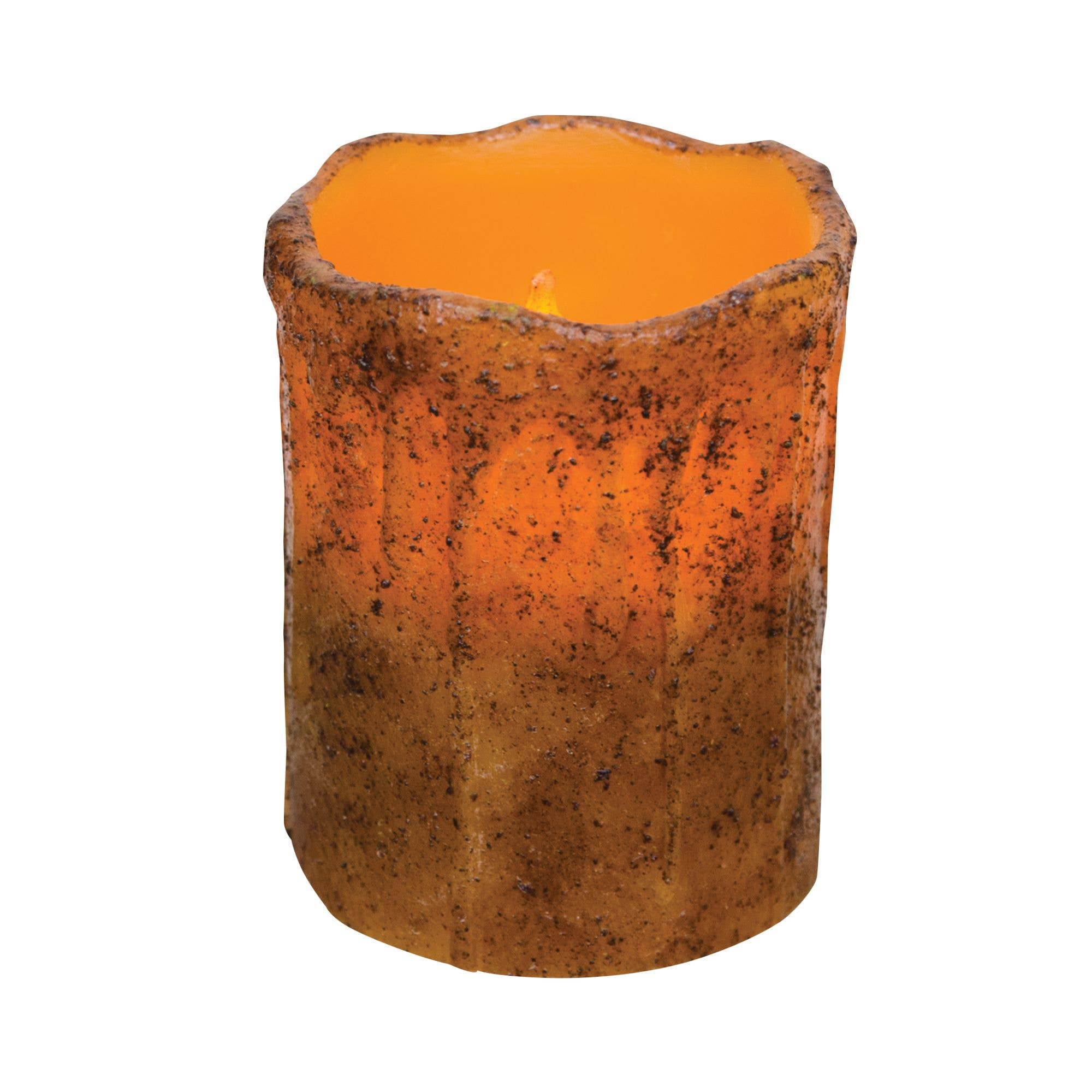 Burnt Ivory Drip Pillar features an on/off mode, as well as a timer mode that allows for 5 hours on and 19 hours off. Measures 6" high by 3" wide and requires three AAA batteries (not included).