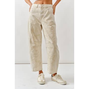 Floral embroidered pattern solid twill pants