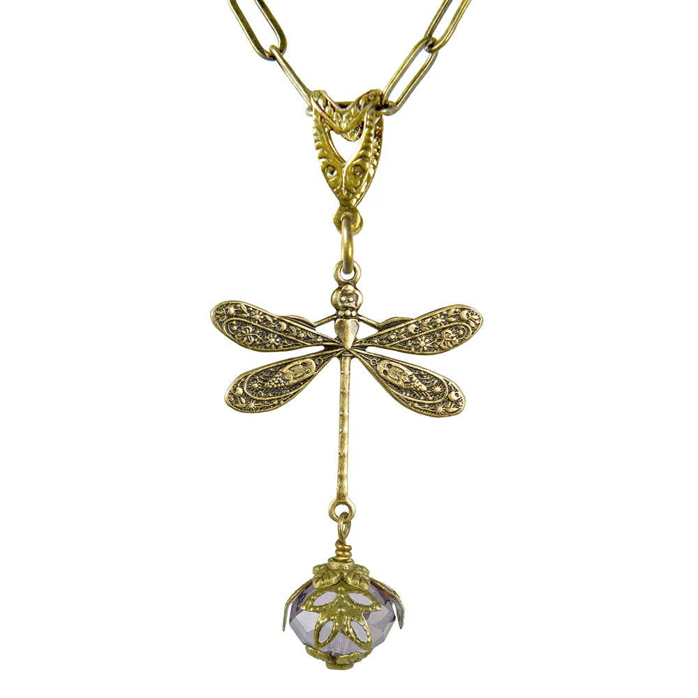 Dragonfly In Circle Pendant On Poly Necklace Handmade in the USA by a female artisan