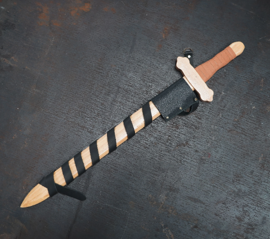 Base set includes a 40 inch bow with leather handle wrap, hand sewn felt quiver, and 6 bamboo arrows with fletching's. -Bows are made from bamboo, pine wood, and synthetic string. The real leather handle wrap may vary depending on what color leather we have in stock. Color varies from tan to black. -The quality construction and use of traditional materials make a surprisingly functional and beautifully authentic toy sized bow. - Includes wood bow, six rubber tipped arrows, and the choice of a felt cloth quiver or a leather quiver. Arrows have real feather fletching. -Felt Quiver loops to allow it to be worn from a belt on hip or even across the back (belt not included). -This toy has more oomph than you might expect but safe for children as long as they are not aimed at people. -This product is made from natural materials, expect slight variations in wood color and character and feather shape. -Dimensions- Arrow length is 21 inch
