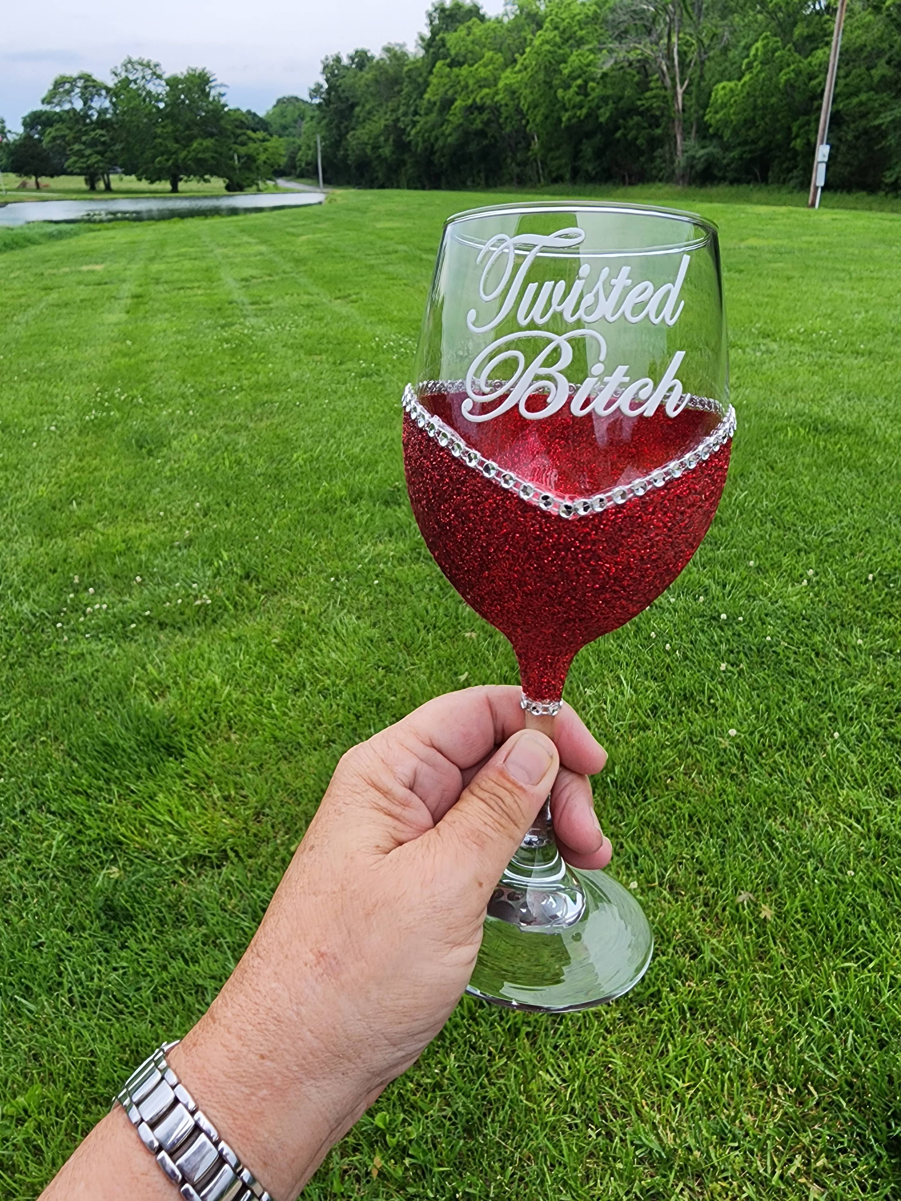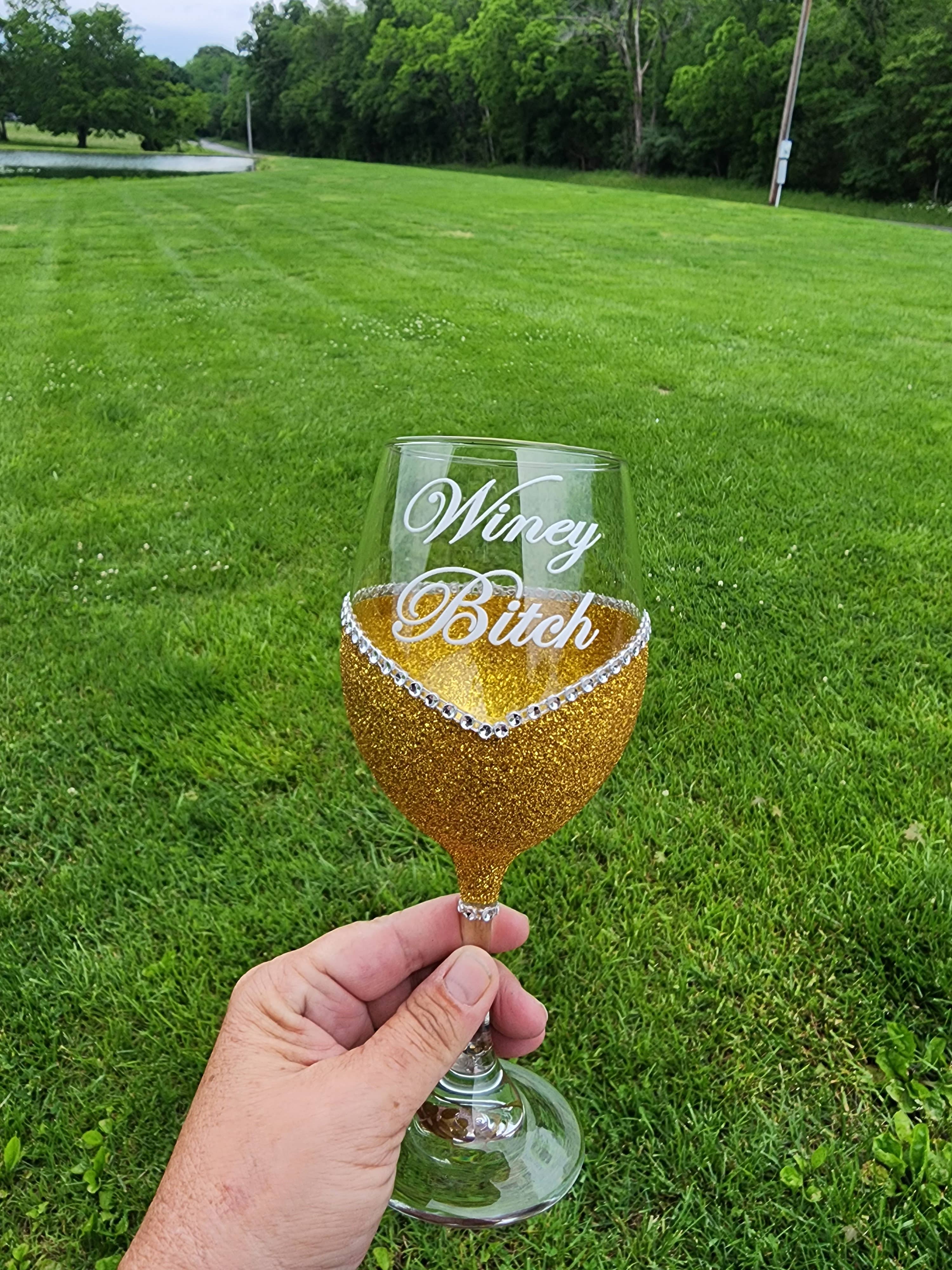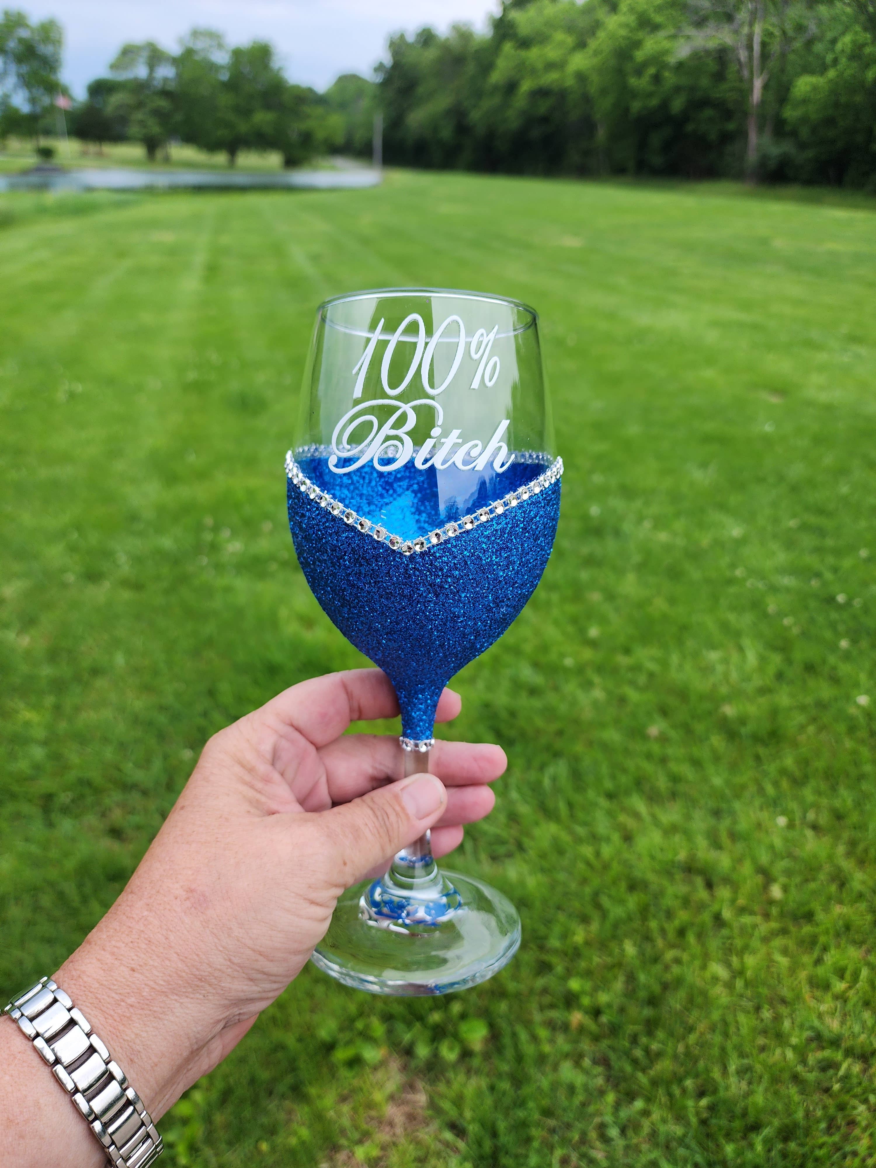 Sweet Bitch – Bling Glitter Glass Wine Glass (The Bitch Collection) Because she’s 50% sugar, 50% side-eye, and 100% fabulous. 🍷💅✨ Our Winey Bitches Co “Sweet Bitch” Bling Glitter Glass Wine Glass is for the kind of woman who’ll bake you cookies… then eat them herself with a glass of wine and no regrets. Handcrafted by “T” herself with premium glitter and WB flair, this glass is the perfect mix of nice and naughty — heavy on the pour, light on the apologies. Sweet enough to charm the room. Savage enough to run it. 💋 Details: * Available in Stem 20 oz or Stemless 20.5 oz glitter glass styles * Choose your favorite glitter color — pink, rose gold, silver, or custom sparkle * Handcrafted by “T” herself — each glass is unique, sparkly, and just a little dangerous * Perfect for girls’ nights, gift-giving, or anyone whose halo’s just slightly crooked 😈 Hand wash only – Each glitter glass purchased helps to feed homeless doggies! Winey Bitches gives back! Each Tipsy Sip or glass purchased helps feed 5–8 meals for homeless and shelter animals. 🐾❤️