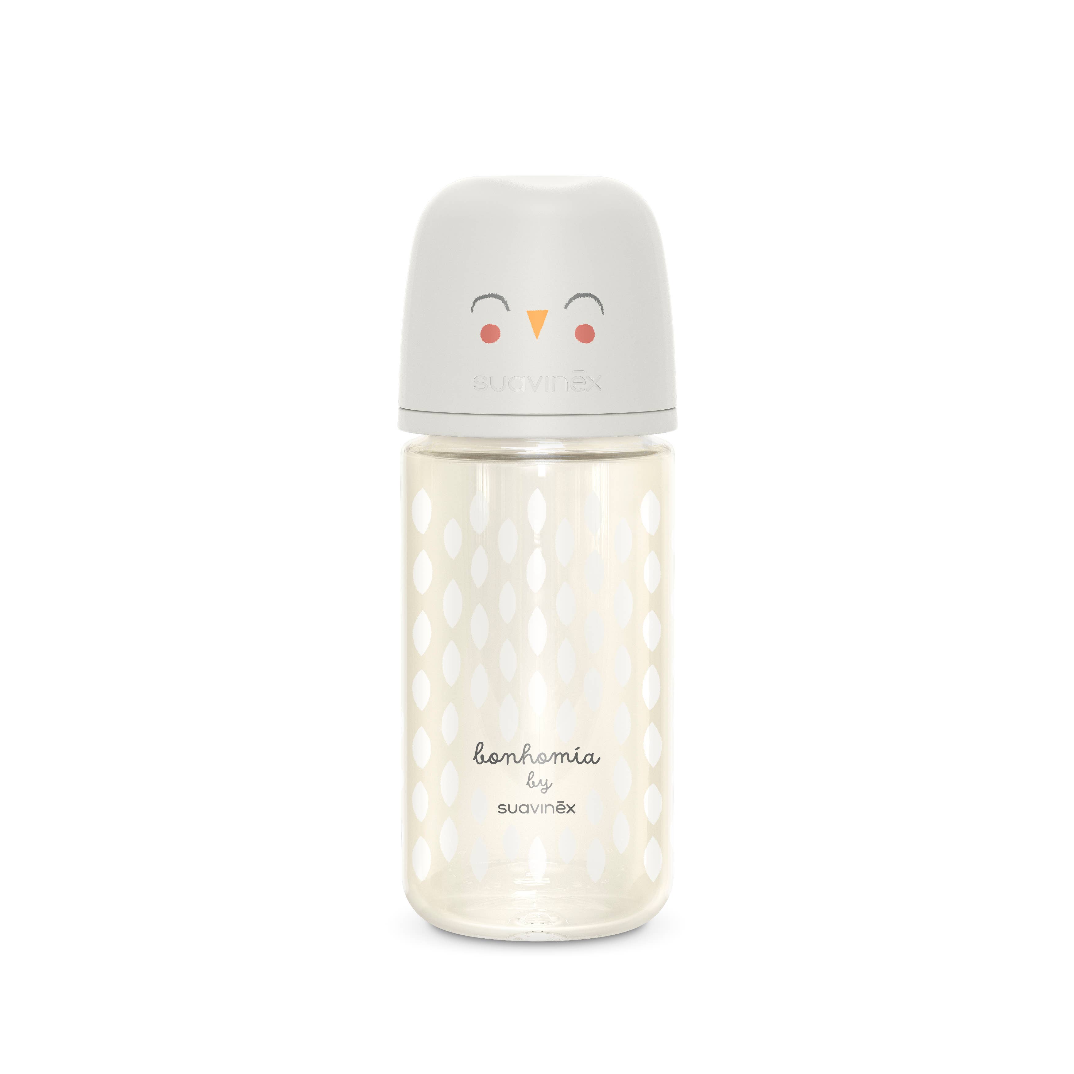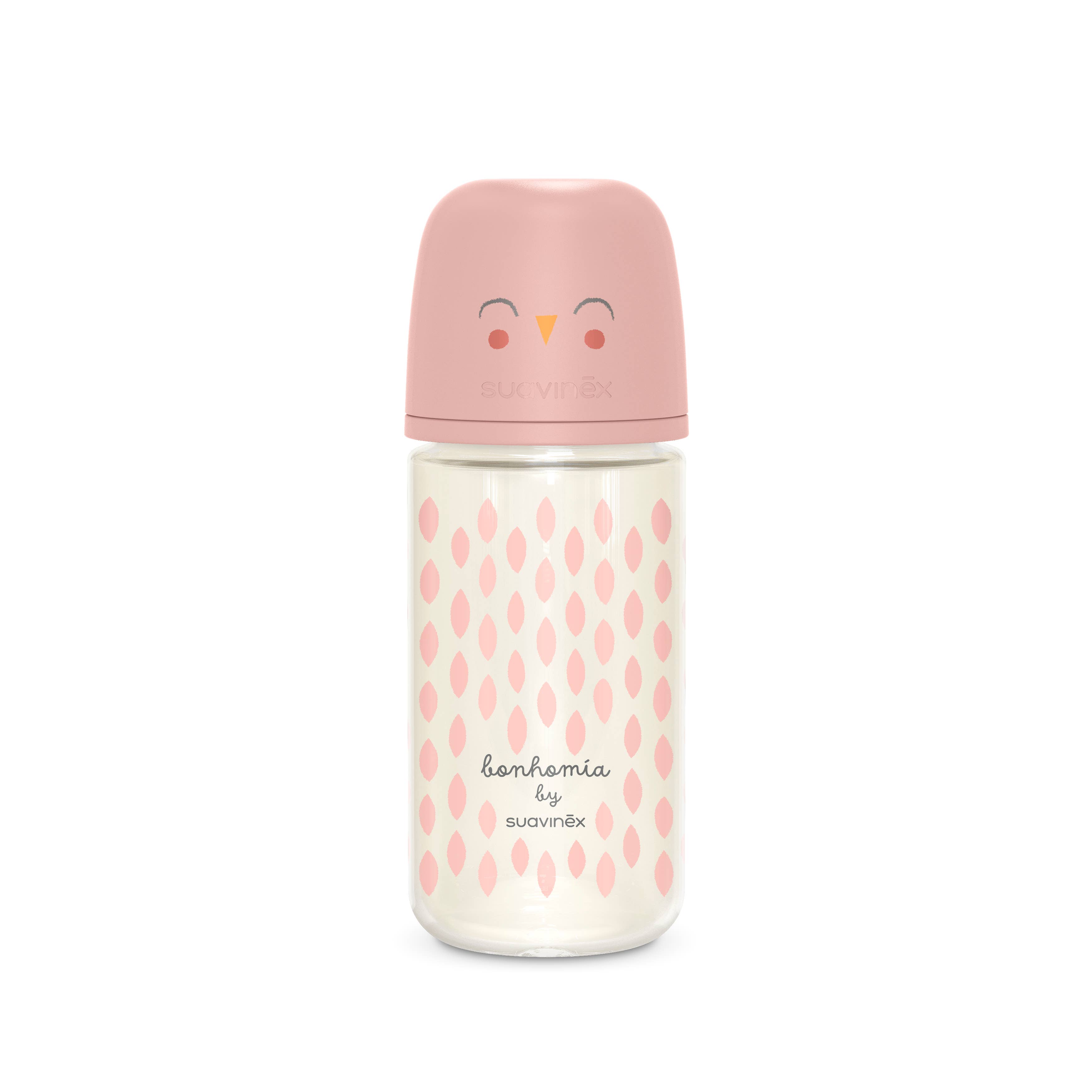 From the #1 Spanish bottle brand, Sauvinex has been beloved by parents for 40 years. Introducing the Suavinex Bonhomia SX PRO™ Glass Bottle, a high quality glass bottle designed & made in Spain. It features the revolutionary SX PRO™ anti-colic silicone nipple, which is designed with respect to the baby's changing oral development and is endorsed by the SEOP (Spanish Society of Pediatric Dentistry). The physiological shape of the nipple helps the tongue remain in the same natural position as when the baby is breast feeding, aiding in correct positioning of the mouth, tongue & jaw.