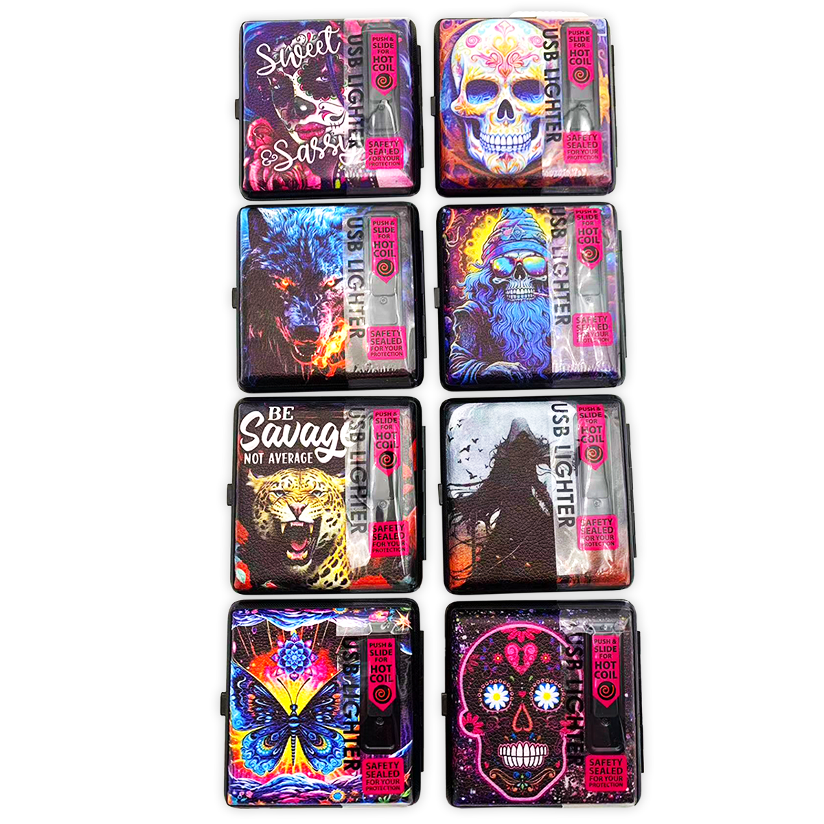 Wholesale Smokezilla Cigarette Case USB Coil Lighter Assortment - 8/Pk