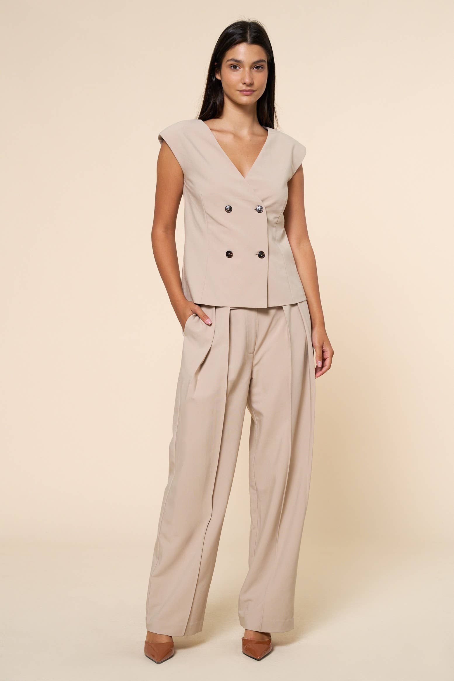 James Brown trousers Wool wide leg pants Fits true to size, take your normal size Mid-rise, cut for a wide-leg fit Fabric: 40% wool 6% visc 44% pes 8% acr 2% lycra 359 gr/m2 Note* product will be shipped in 10 to 12 days
