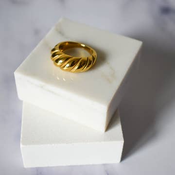Add a touch of luck to your outfit with our Lucky U Ring! Featuring a charming horseshoe design, this ring brings a fun and playful vibe to any look. * 18K Gold Plated Stainless Steel * Available in Sizes 6-8