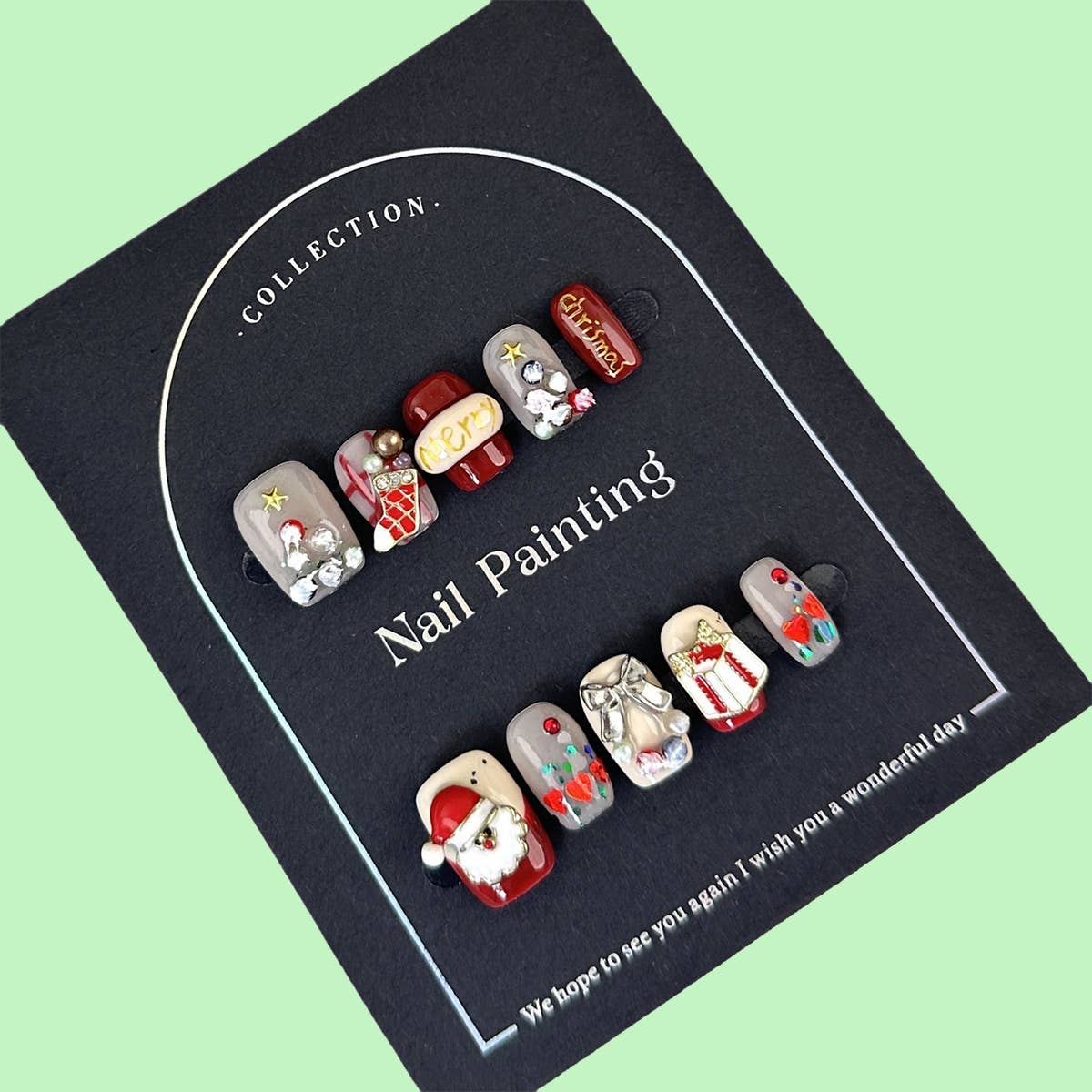 CALA 87818 Posh Dreams Short Oval XMAS Tree Press on Nails Kit. Short length Oval shapes. Crafted from high-quality materials, these medium-length coffin-shaped tips are durable, flexible, and comfortable—designed to resist breakage and splitting. Featuring a glamorous finish and cheerful holiday design, they’re perfect for adding a touch of seasonal sparkle. Nails can be trimmed and filed just like natural nails for a custom fit. Kit includes: 24 press-on nails, nail file, cuticle stick, and nail glue. 6 kits in box.
