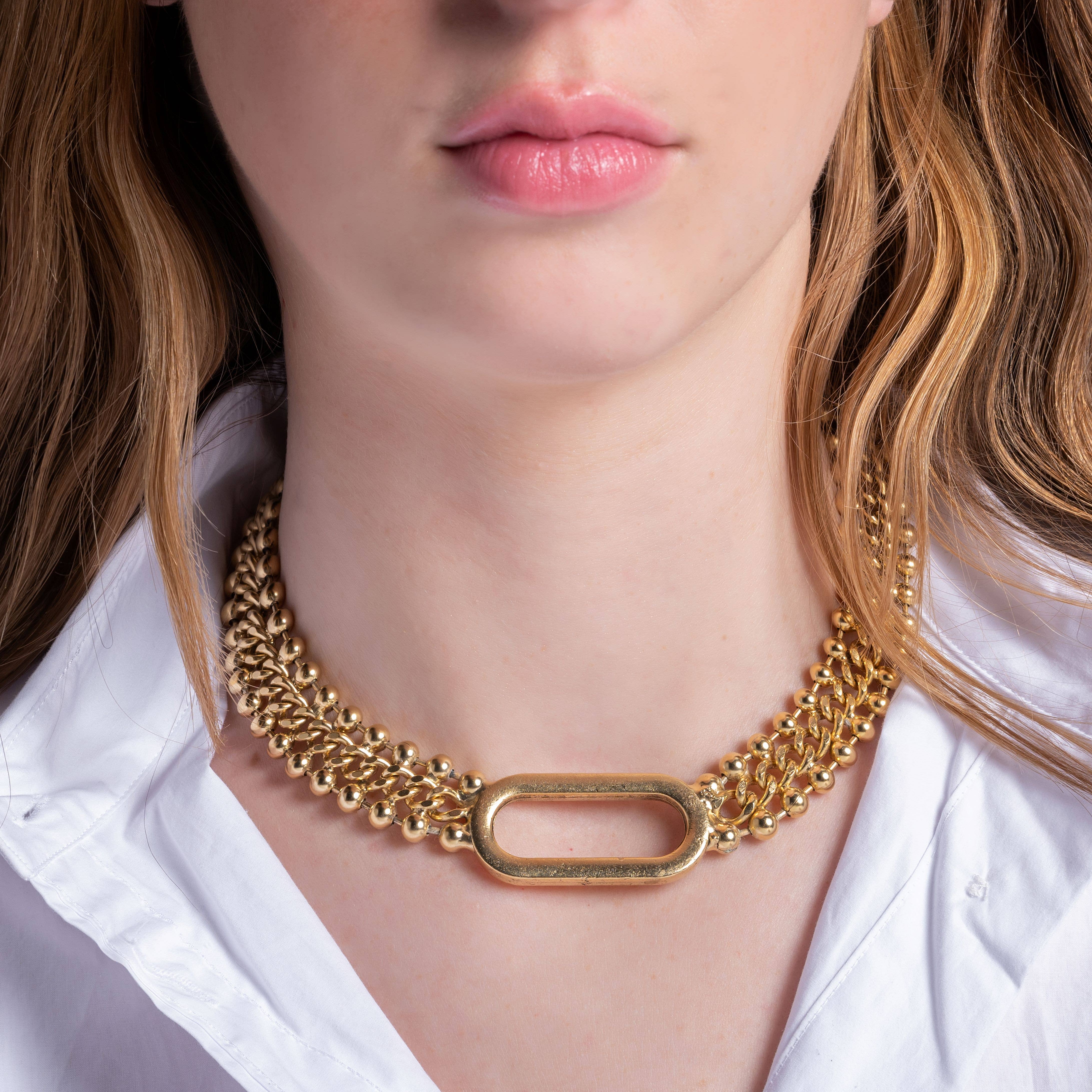 PRODUCT DETAILS * Water Resistant💧 * Brass * 18K Gold * Gold Filled Chain * Hypoallergenic * Nickel Free * SIZE: 16" + 4" Extender. Closure: Lobster Clasp DESIGNER NOTE Make a statement with our Aspen Double Chunky Choker. The classic, twisted design of this necklace will have you feeling like a girl boss. STYLE TIP: Style this necklace with a high neck top and our Chunky Tube Hoops for a one-of-a-kind look!