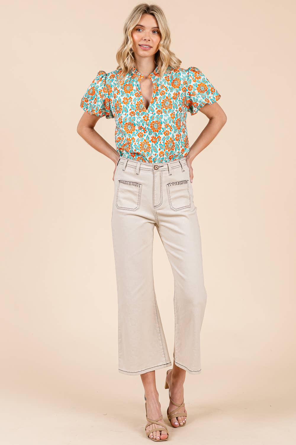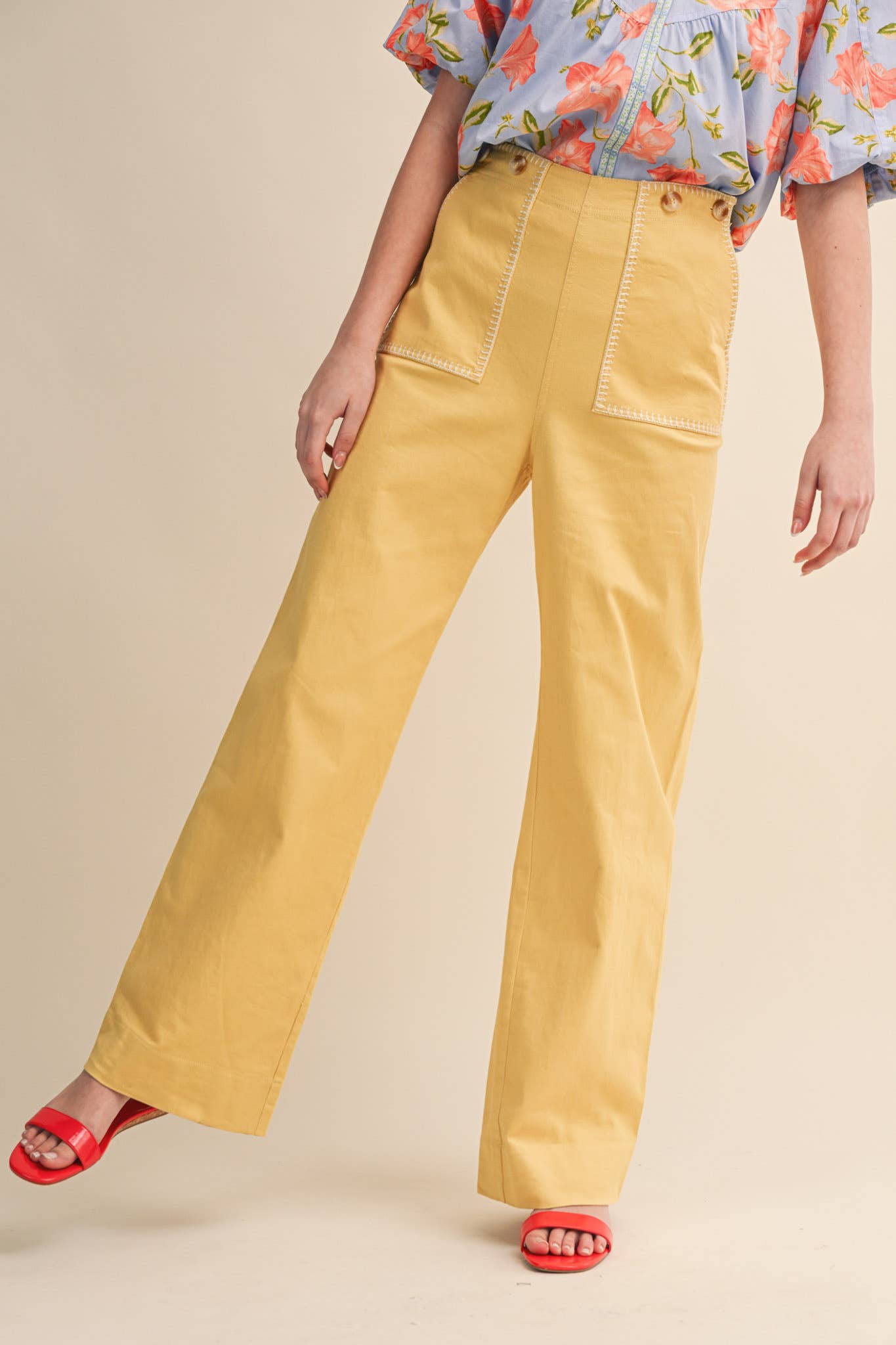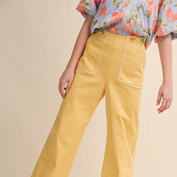 Wholesale Blanket Stitching High-Waisted Cropped Pants, OP51712.
