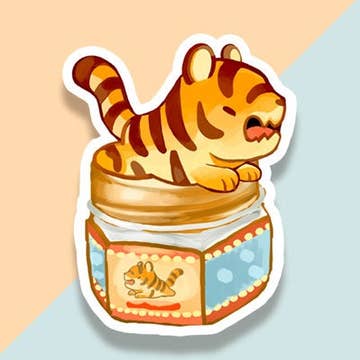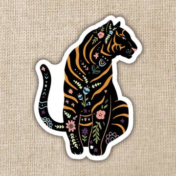 A cute tiger in a little patch of flowers, great for decorating laptops, sketchbooks, water bottles, or anything your heart desires! - 4" long - Matte - Vinyl - Durable, UV Protected, and Waterproof