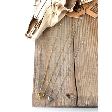 Beautiful multi layer necklace featuring bull horn, link chain, natural bead with on a gold chain necklace. Product Details: length: 20", 18", 16" charm size: .75" -.5" ext: 3" Ball Chain Ext clasp: Lobster Claw metal finish: Gold Plated product: Lead & Nickel Compliant anti-tarnish: Double E-coating