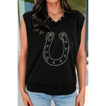 The Heritage Horseshoe T-Shirt is an easy add for retailers looking for a clean, western-inspired graphic tee with strong in-store appeal. Printed on a soft navy unisex tee, this style features a subtle front chest graphic paired with a bold horseshoe design on the back. The look blends classic western influence with a polished, heritage feel, giving it that understated Ivy League cowgirl aesthetic that performs well across seasons. Each tee is printed in-house in Tolar, Texas, offering an authentic western touch and consistent quality that boutique buyers love. Details: Unisex fit Soft, lightweight feel Navy Front + back western graphic Horseshoe design Printed in Texas Wholesale Info: Open pack — choose your sizes 8 piece minimum Cowgirl Graphic tee, Country graphic tee, western graphic tee, rodeo graphic tee, graphic tshirts, western themed shirt, western tshirt, graphic t-shirts for women, cute graphic tees, graphic sweatshirt, western sweatshirt, cowgirl sweatshirt, cows, ranch, western