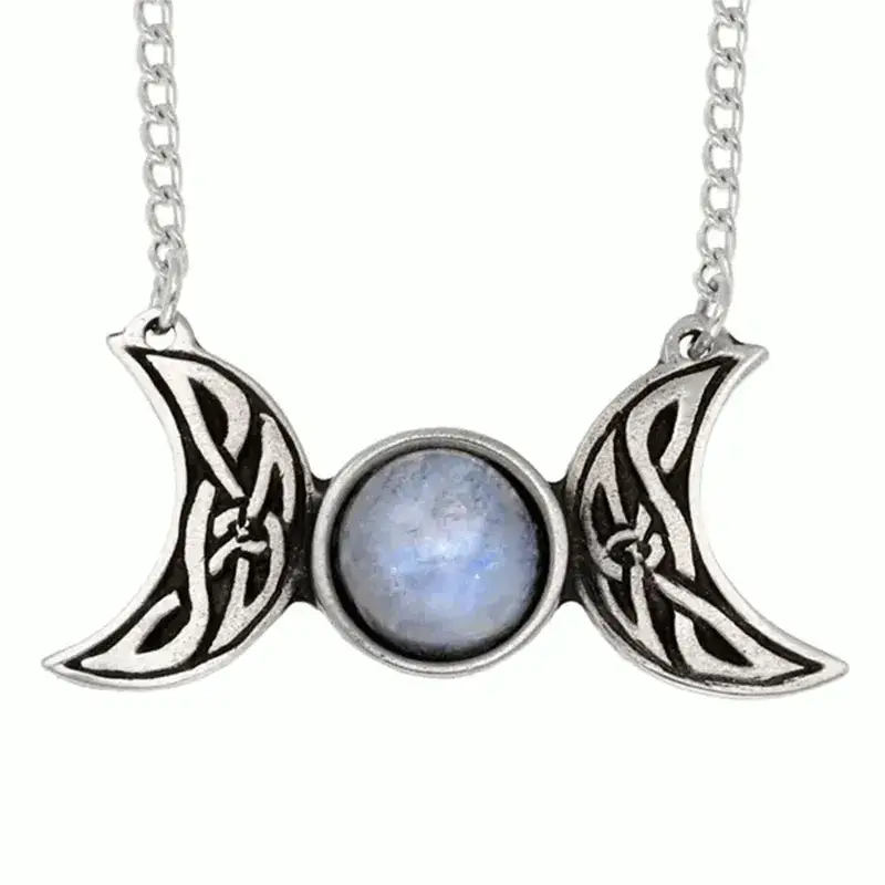 Celtic Triple Moon Pewter Necklace with Moonstone